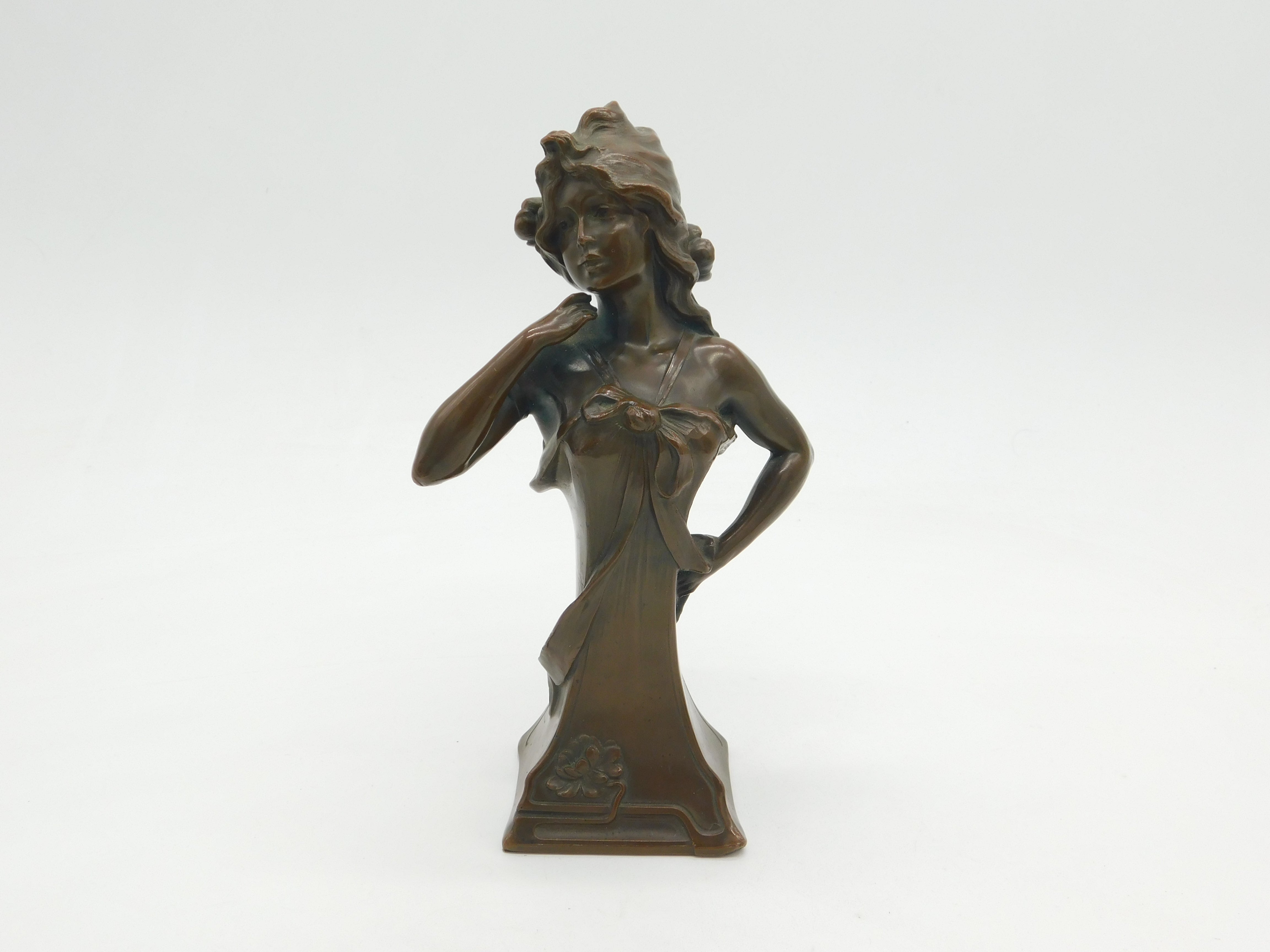 Victorian Art Nouveau Cast Bronze Sculpture of Young Lady Antique c1890