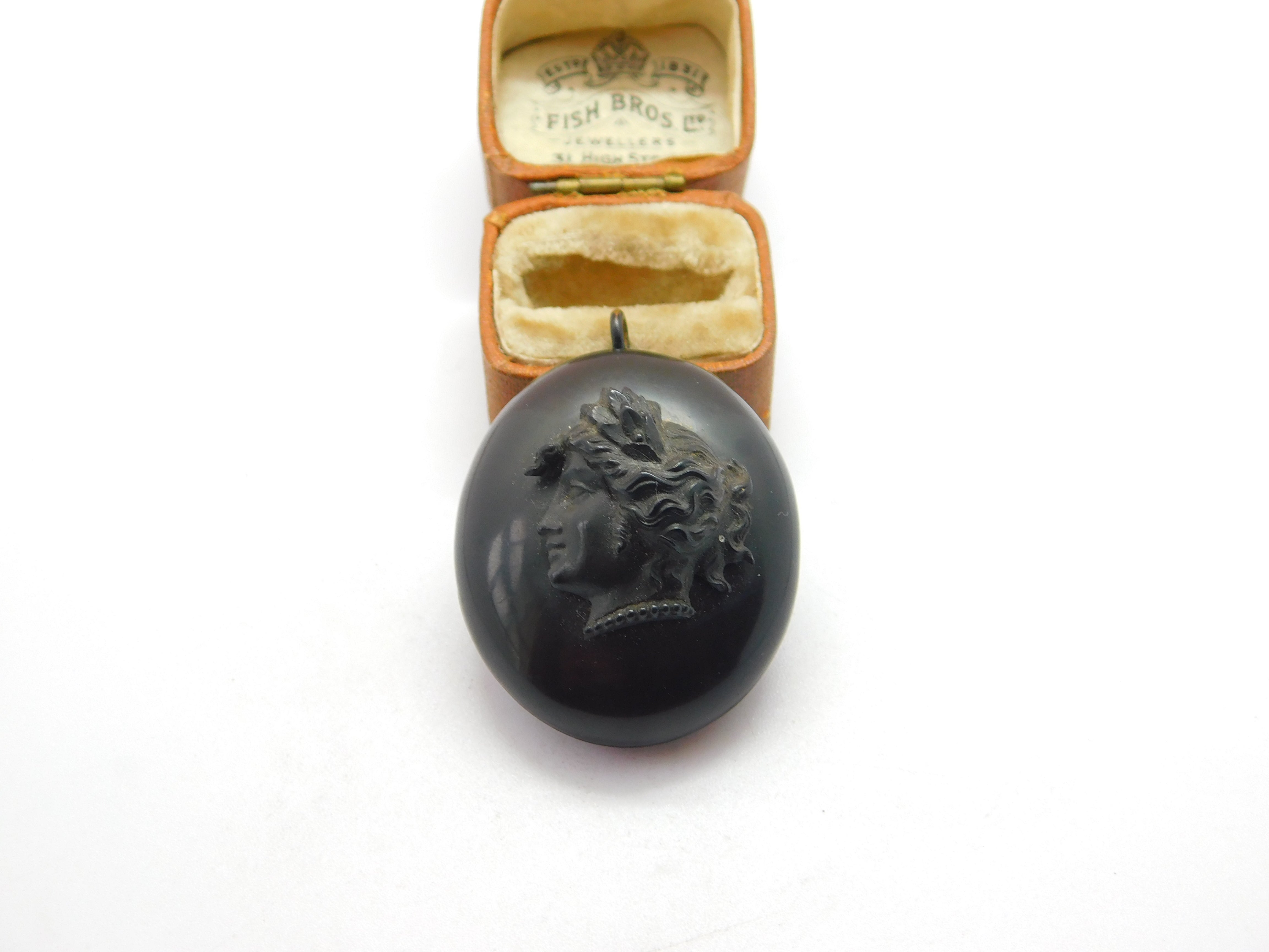 Victorian Carved Vulcanite Mourning Cameo Locket Pendant Antique c1880