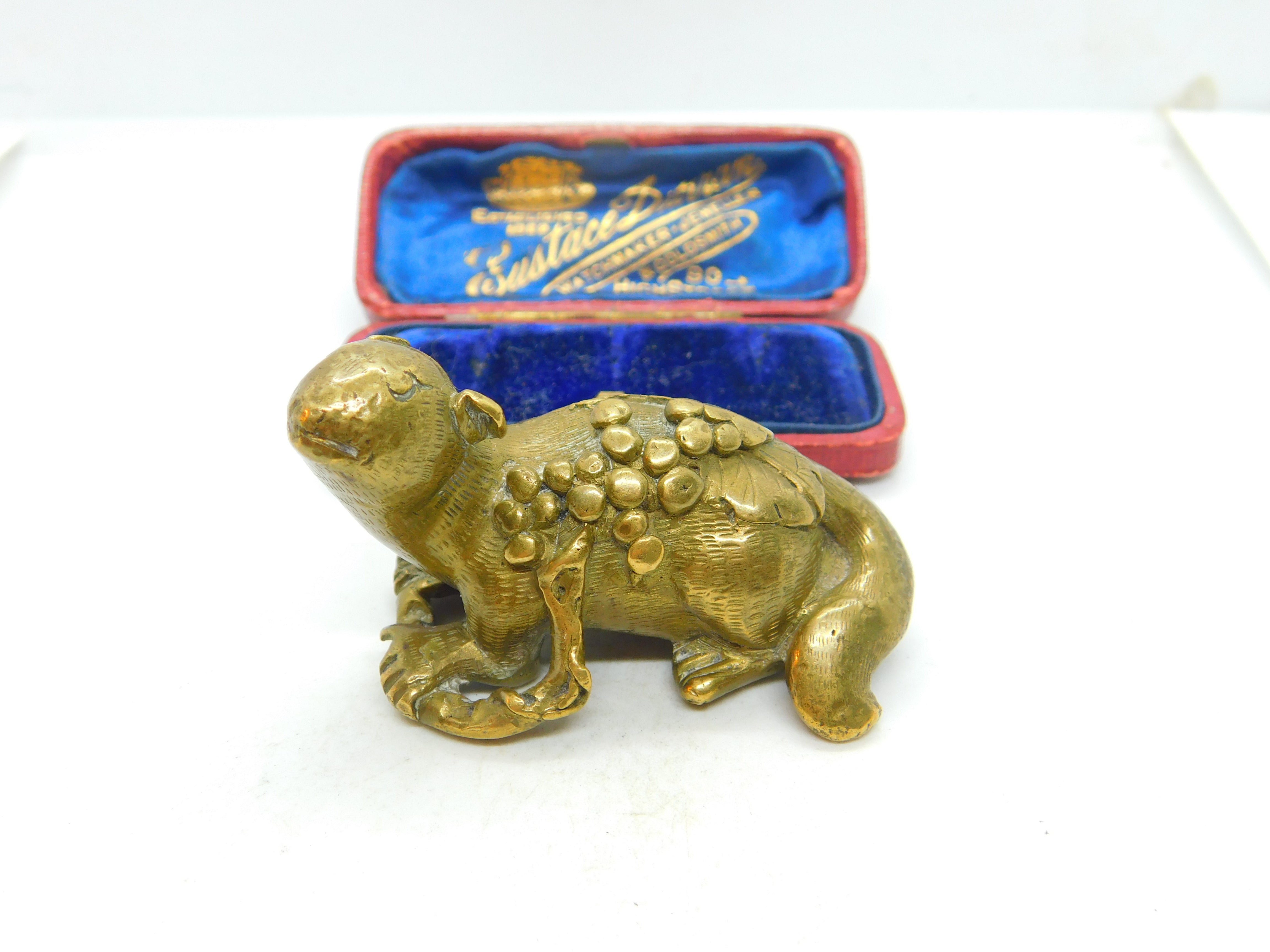 Victorian Chinese Cast Brass Otter Sculpture With Prunus Antique c1860