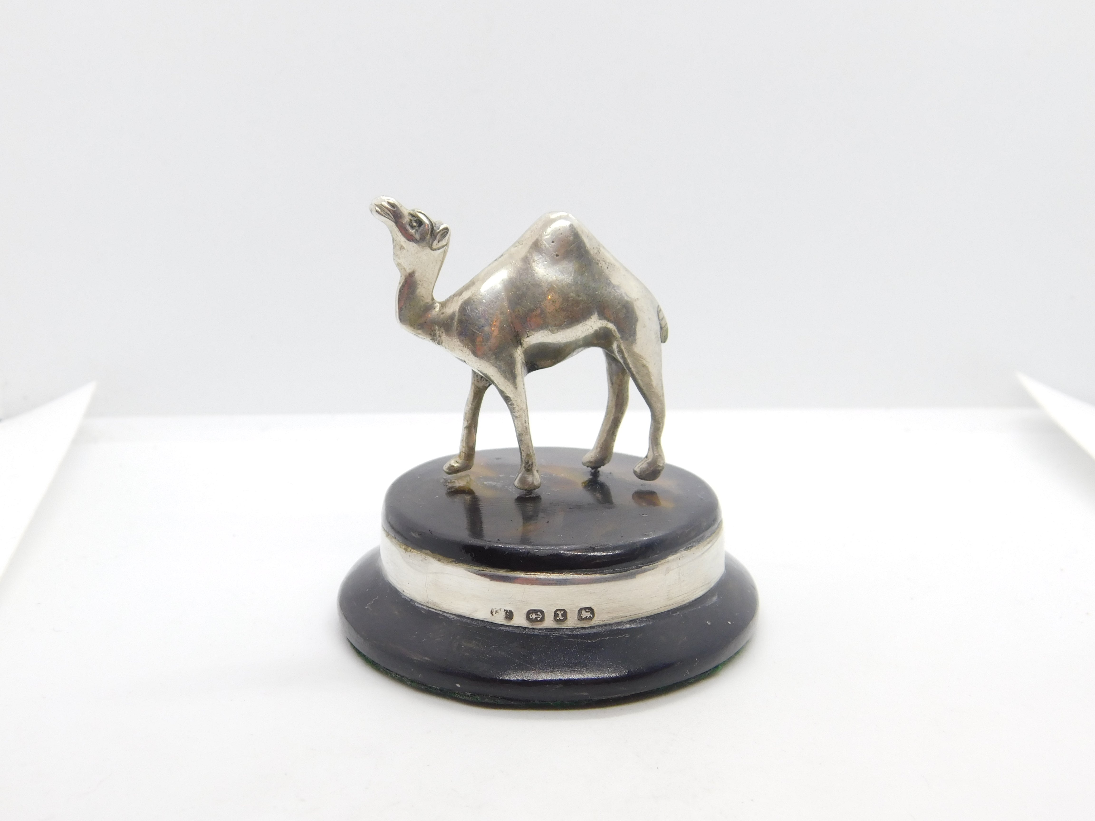Victorian Cast Sterling Silver Camel on Wooden Plinth Antique 1897 Birmingham