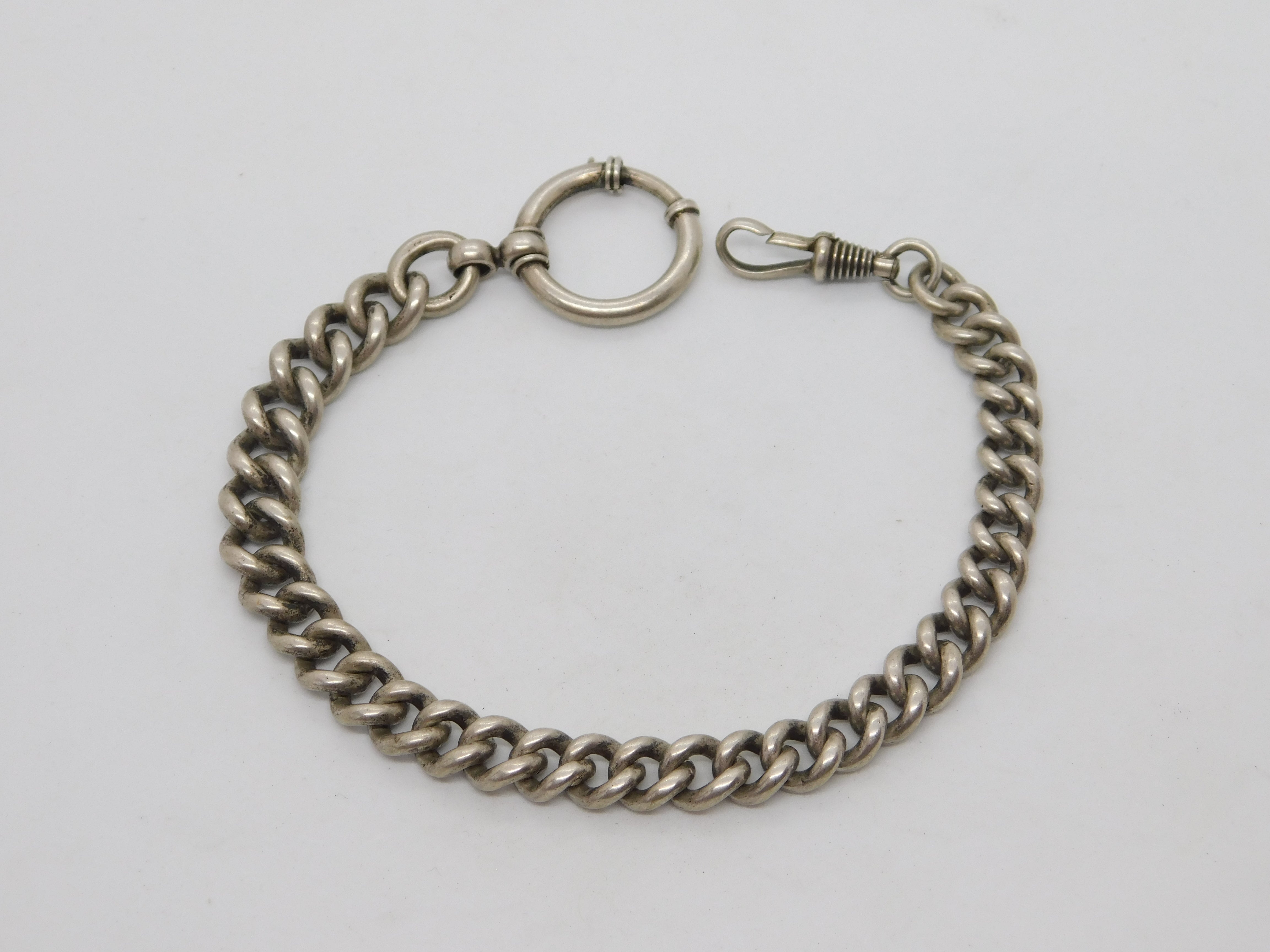 Victorian Chunky .800 Silver Graduating Watch Chain Bracelet c1900 Antique