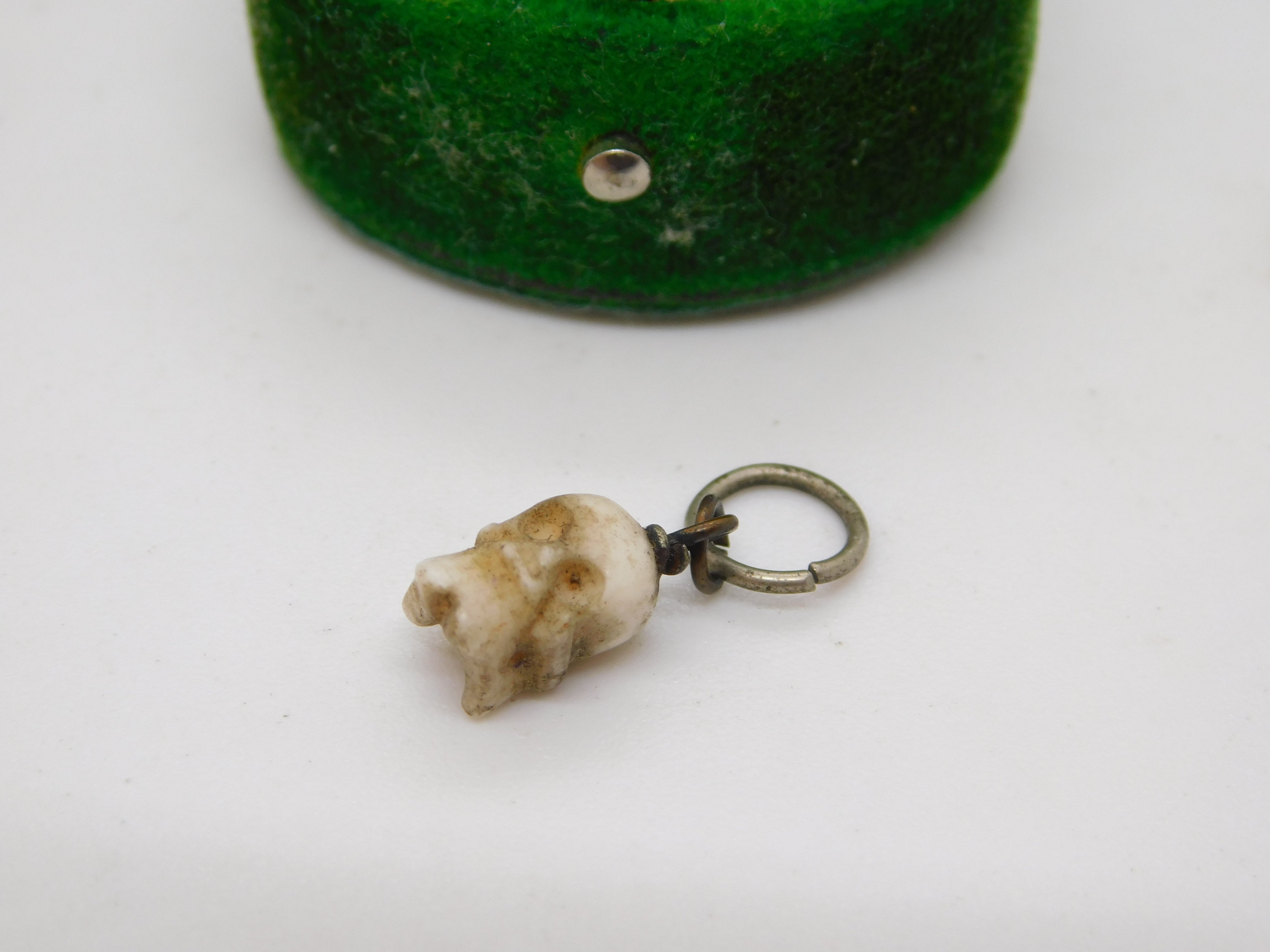 Victorian Carved Glass Small Memento Mori Skull Mourning Charm Antique c1860
