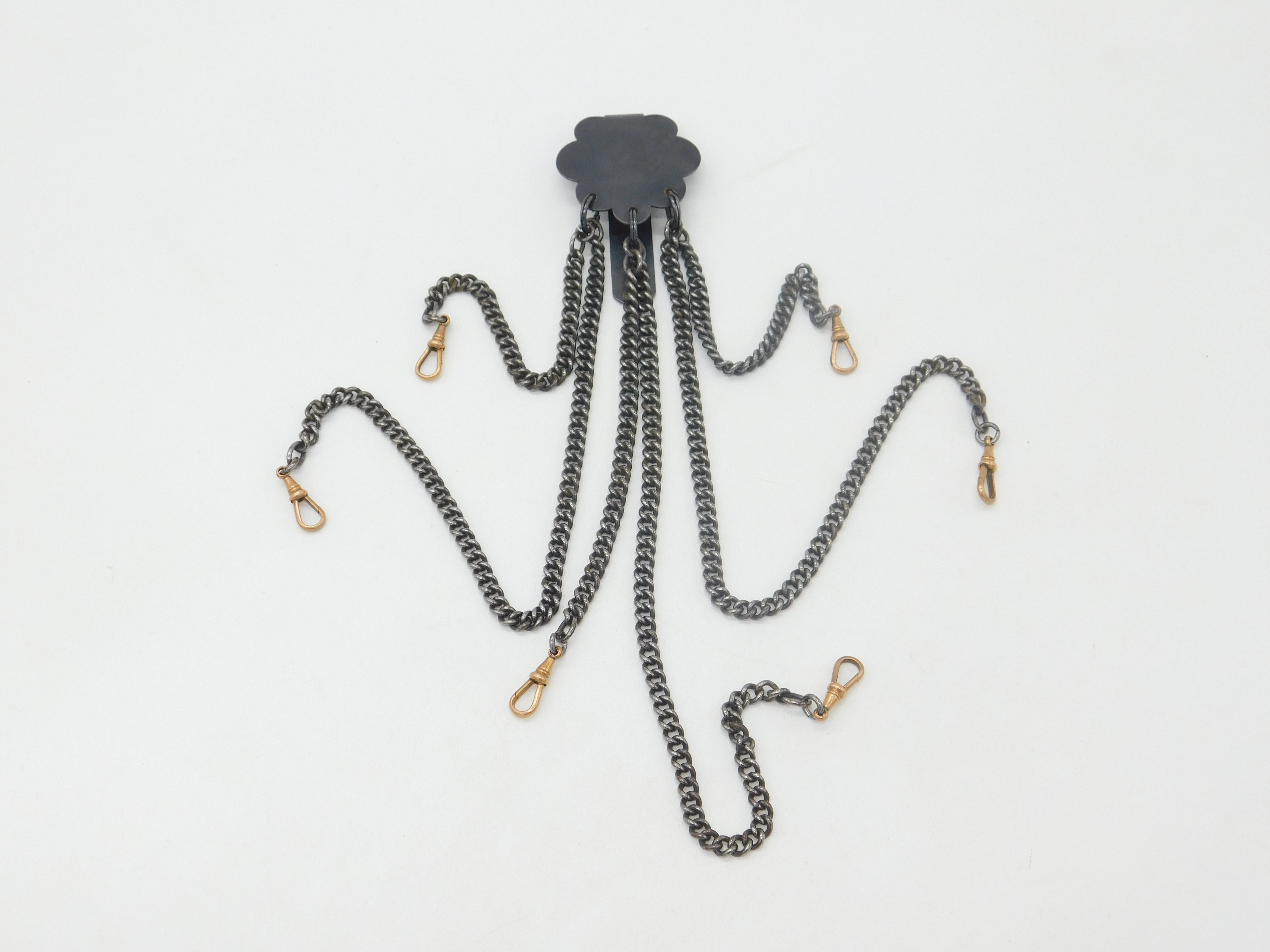 Victorian Cut Steel Chatelaine with Rolled Gold Dog Clips Antique c1860