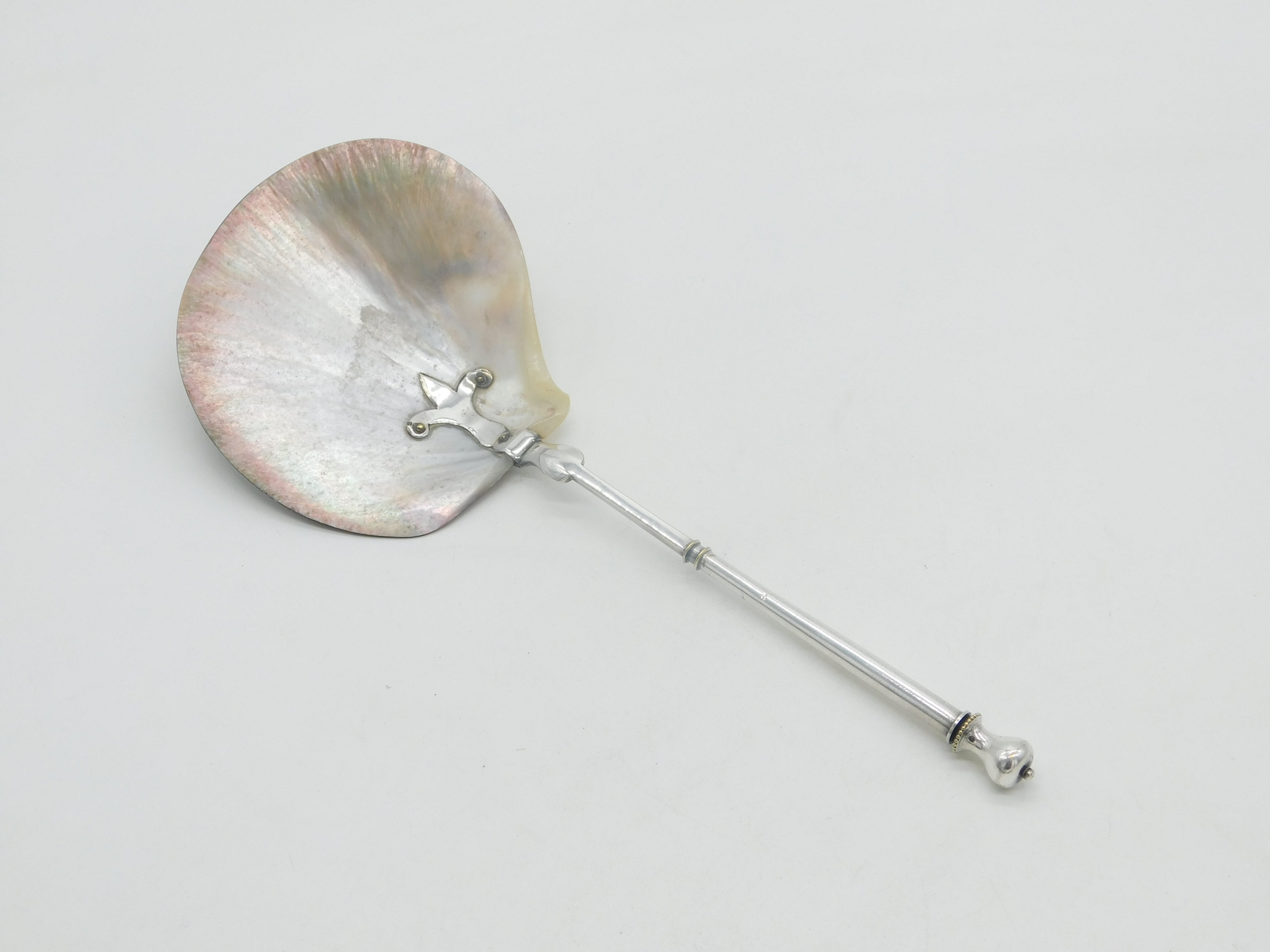 Victorian Danish Sterling Silver Mounted Shell Form Sauce Spoon c1890 Antique