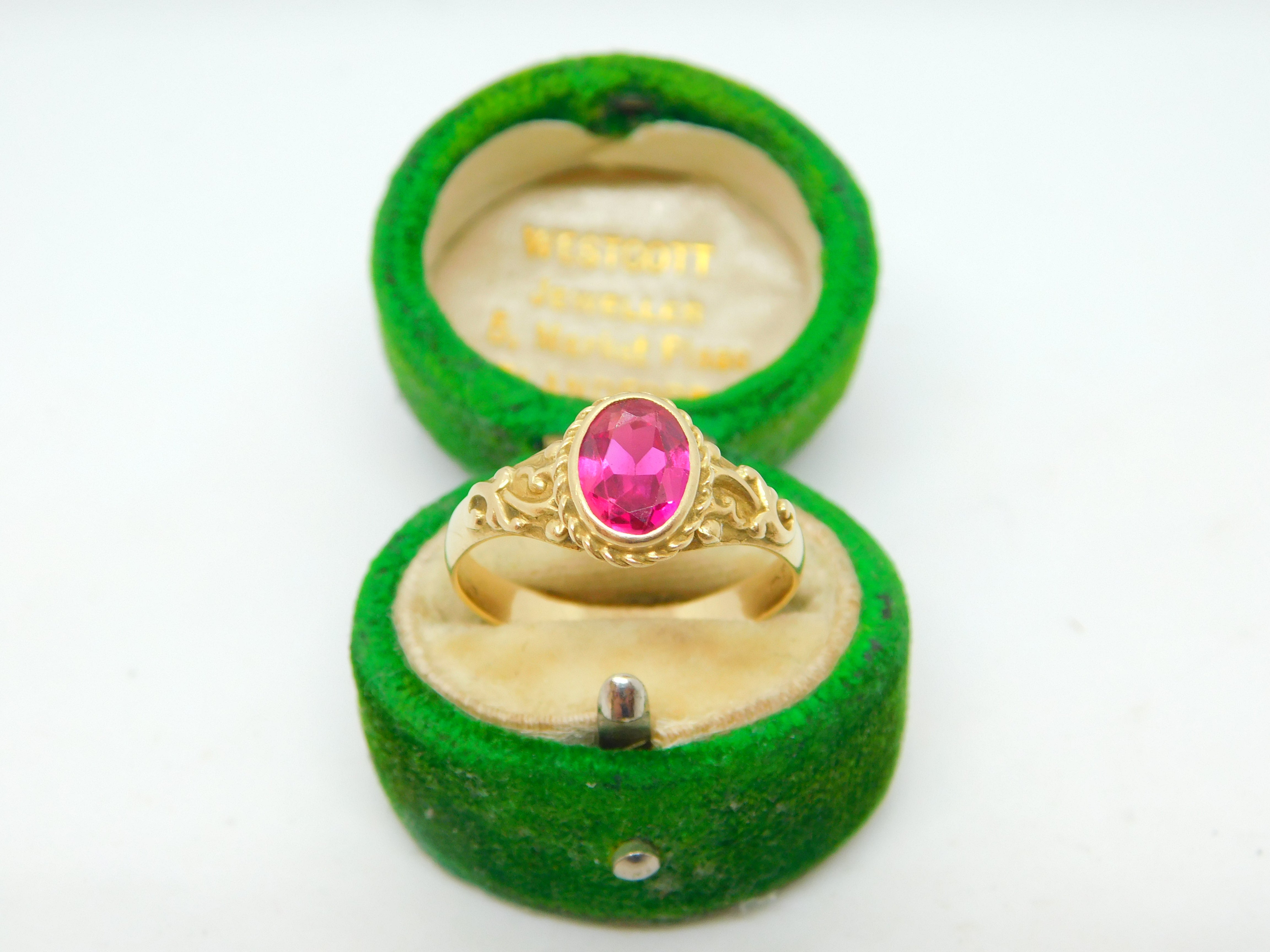 14ct Yellow Gold & 1ct Natural Ruby Dress Ring Vintage c1970