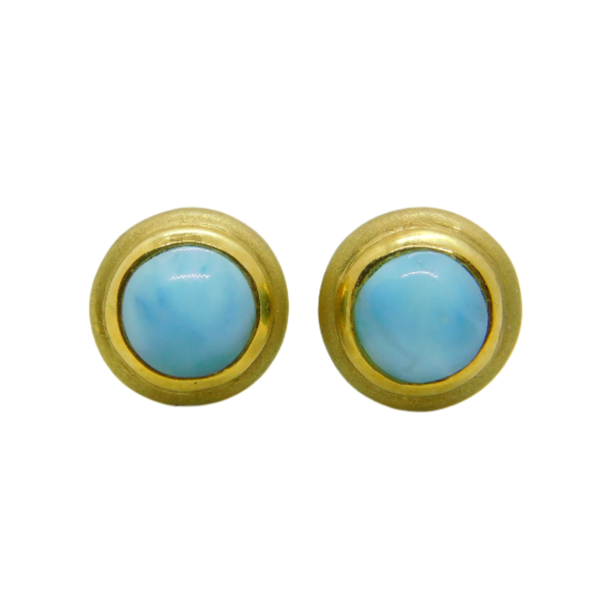 14ct Yellow Gold & Cabochon Turquoise Set Stud Earrings Vintage c1970