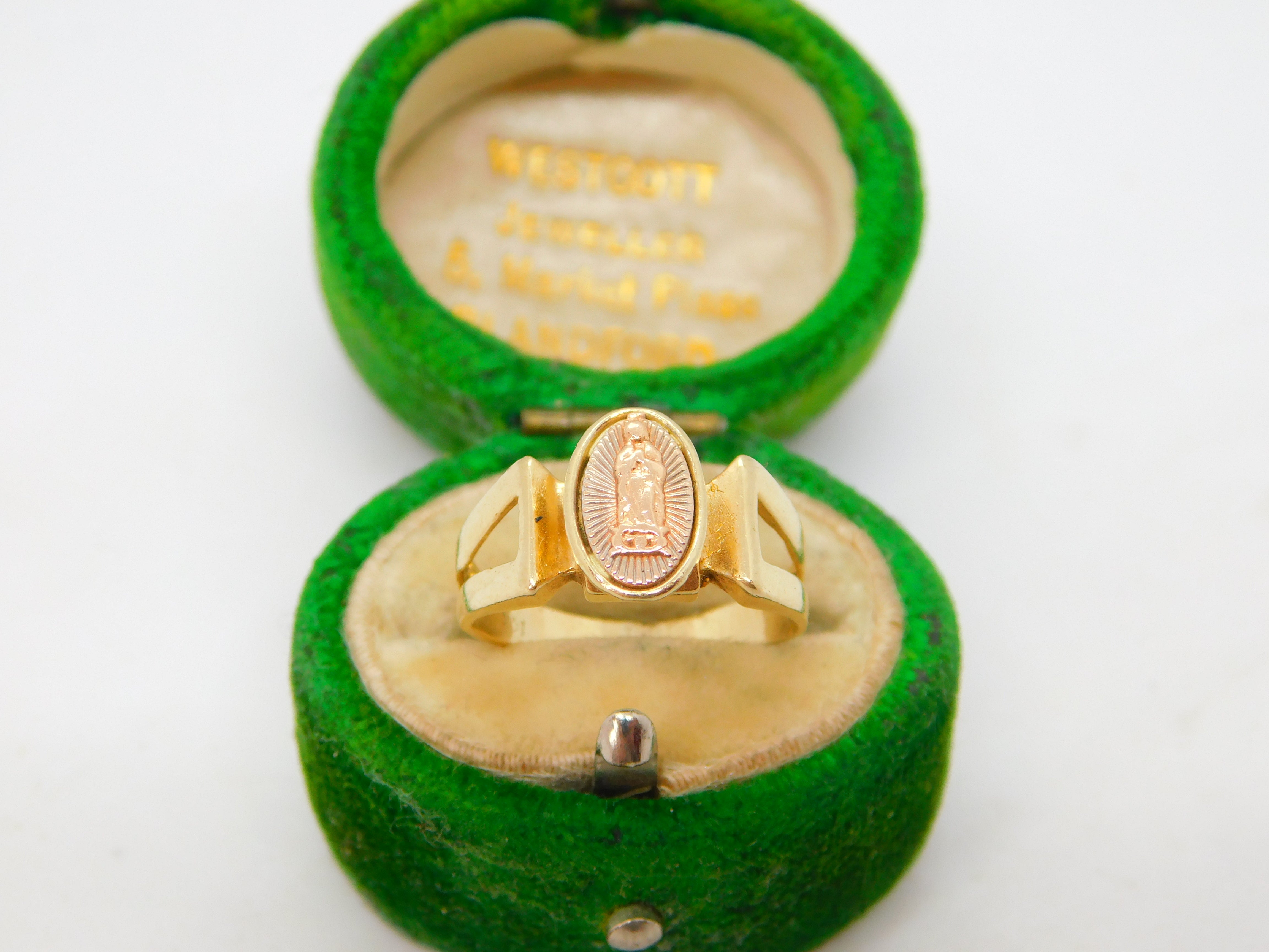 14ct Yellow & Rose Gold Catholic Religious Signet Ring Vintage c1960