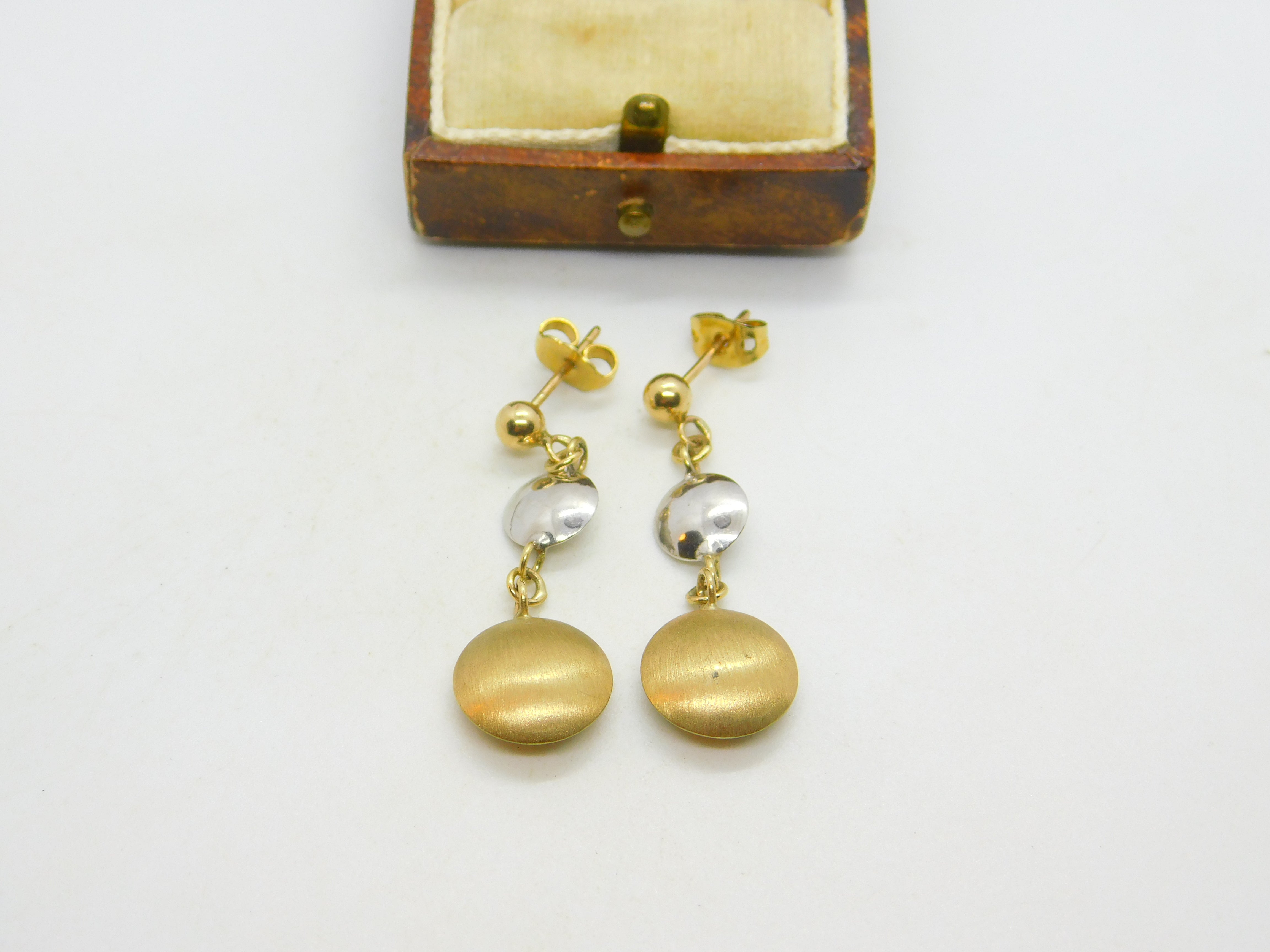 14ct Two-Tone Gold Dangling Pendant Stud Earrings Vintage c1990