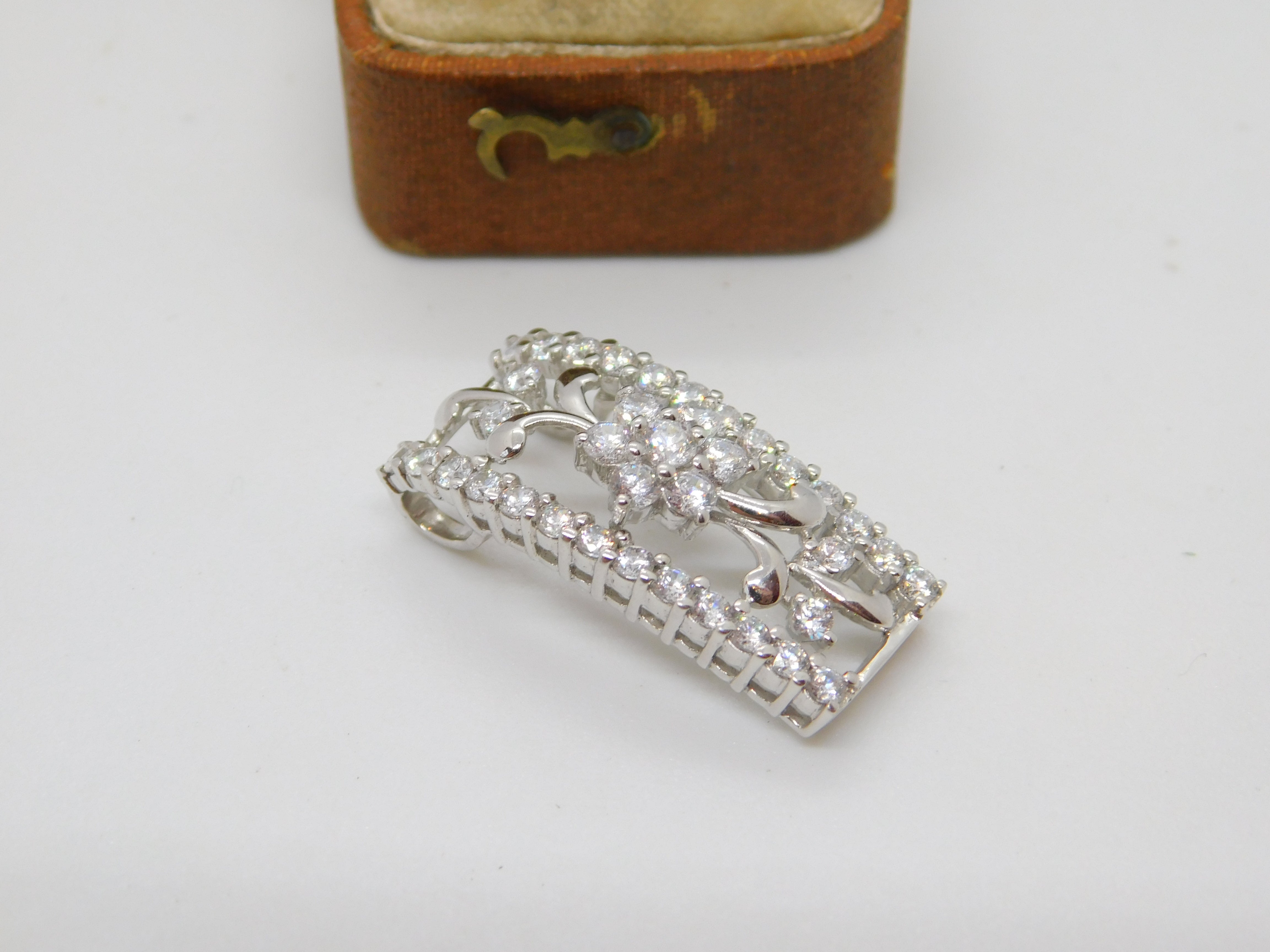 14ct White Gold & CZ Set Floral Sparkling Drop Pendant Vintage c1990