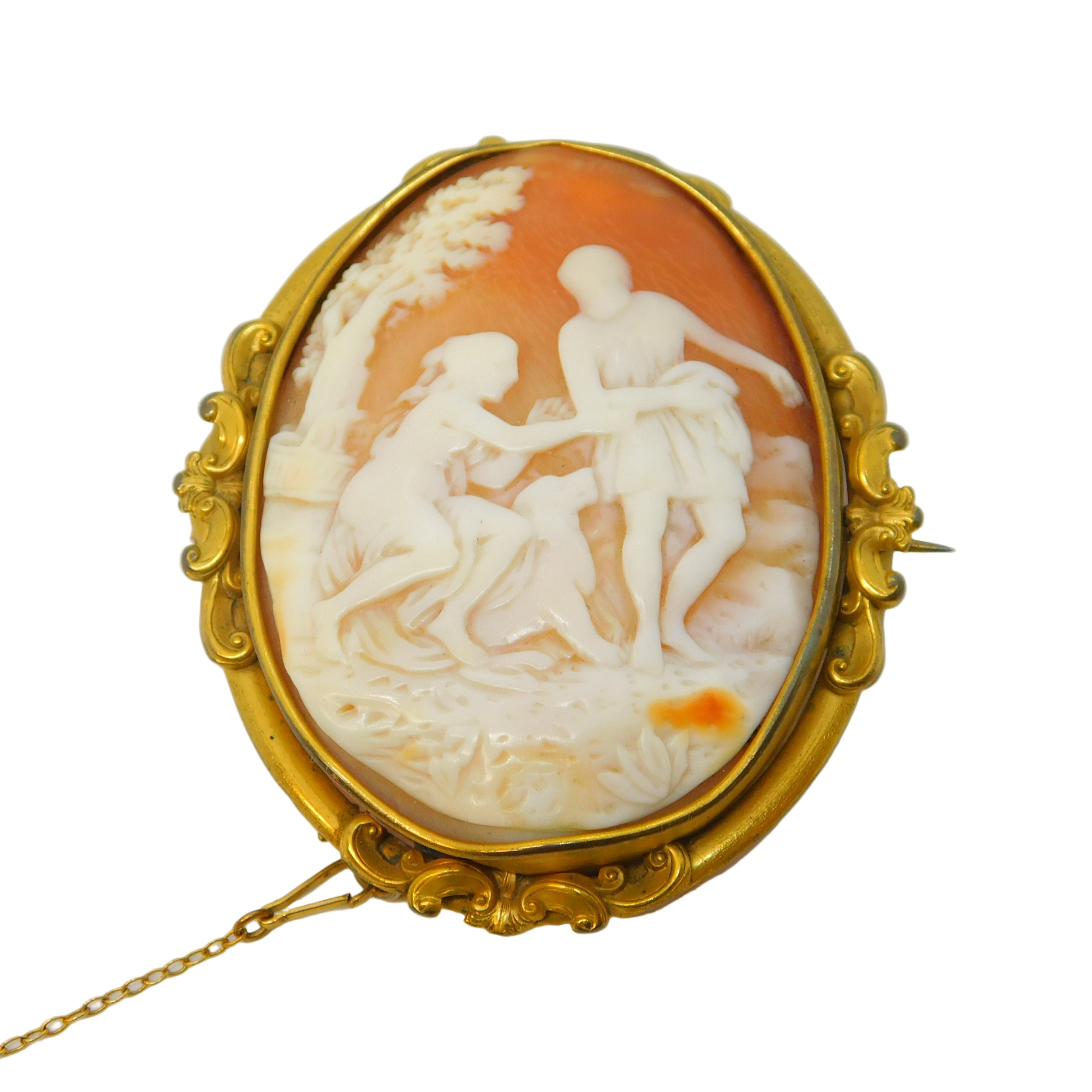 Victorian Large Pinchbeck Carved Shell Classical Scene Cameo Brooch Antique c1860