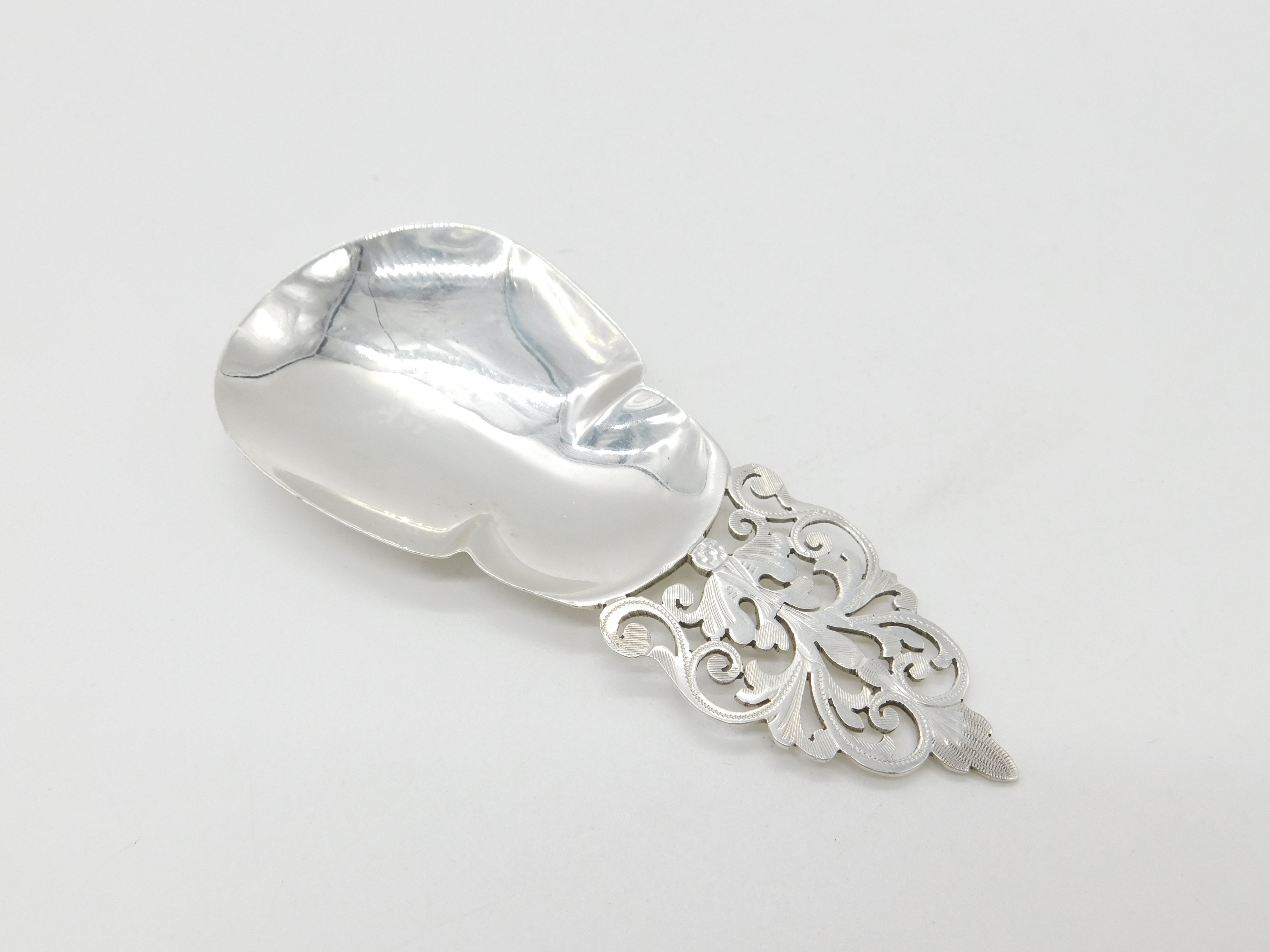 Victorian Large Sterling Silver Floral Tea Caddy Spoon 1897 Sheffield Antique