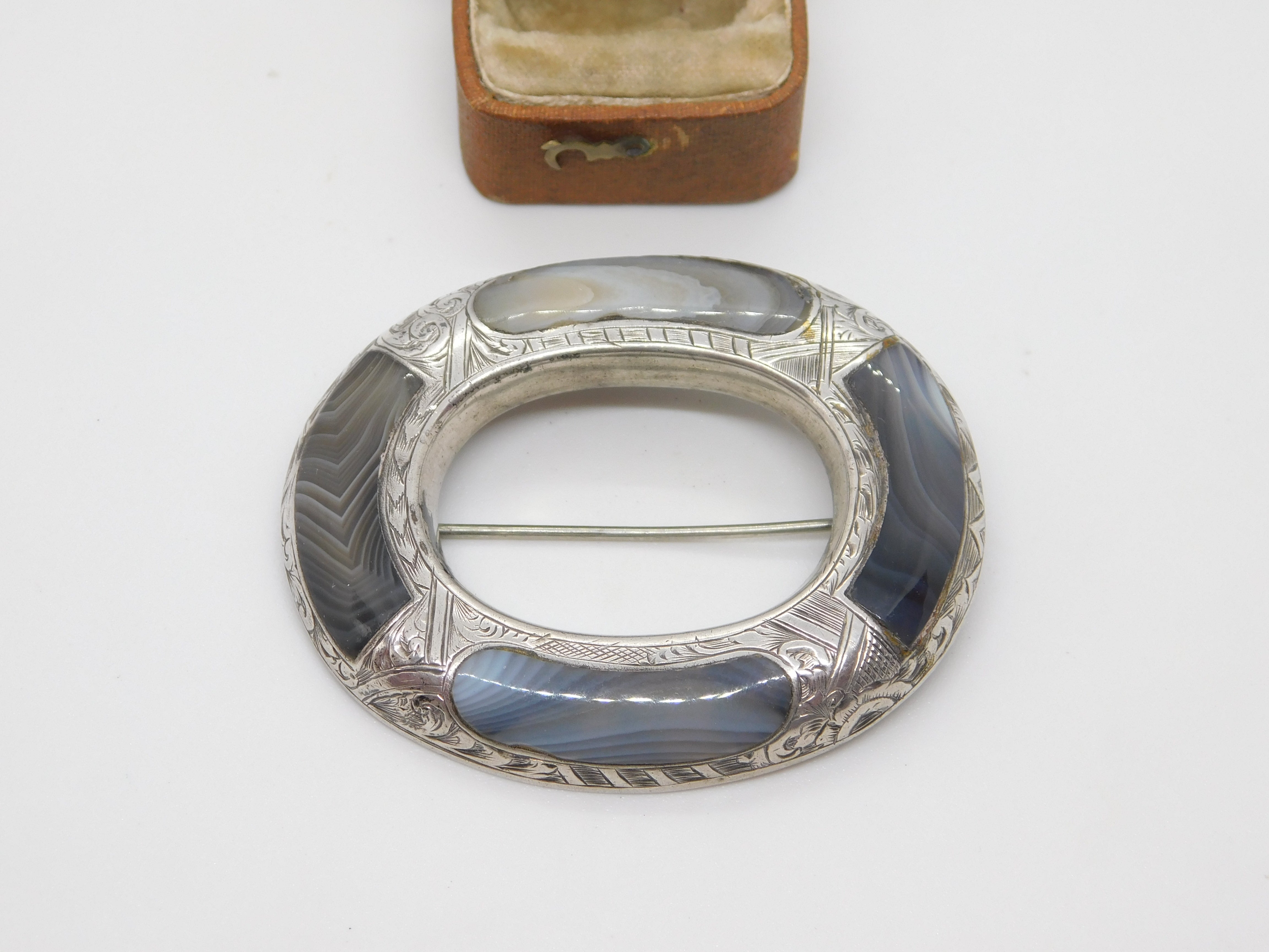 Victorian Large Scottish Sterling Silver Montrose Agate Kilt Brooch Antique 1860