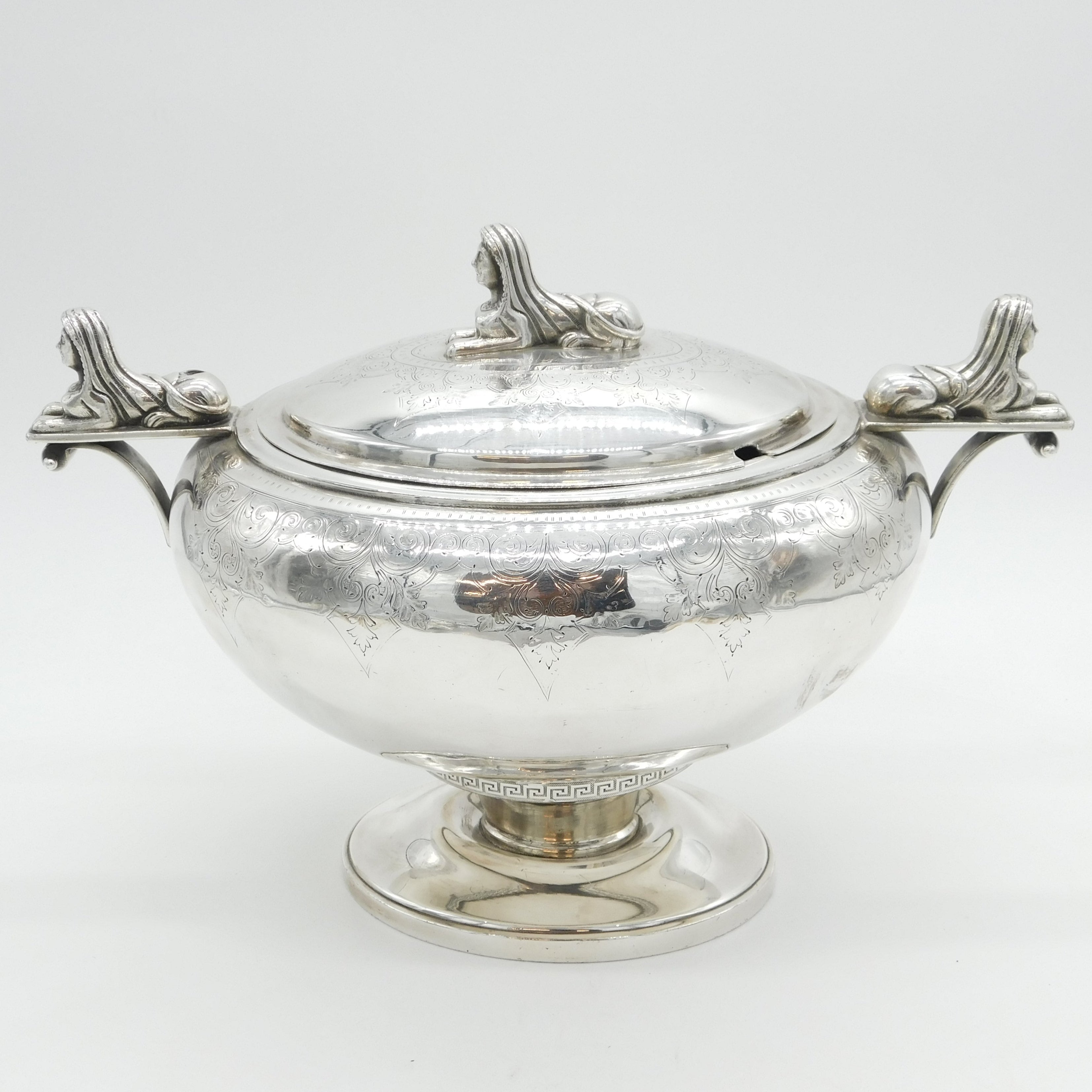 Victorian Large Silver Plated Egyptian Revival Soup Tureen Antique c1880