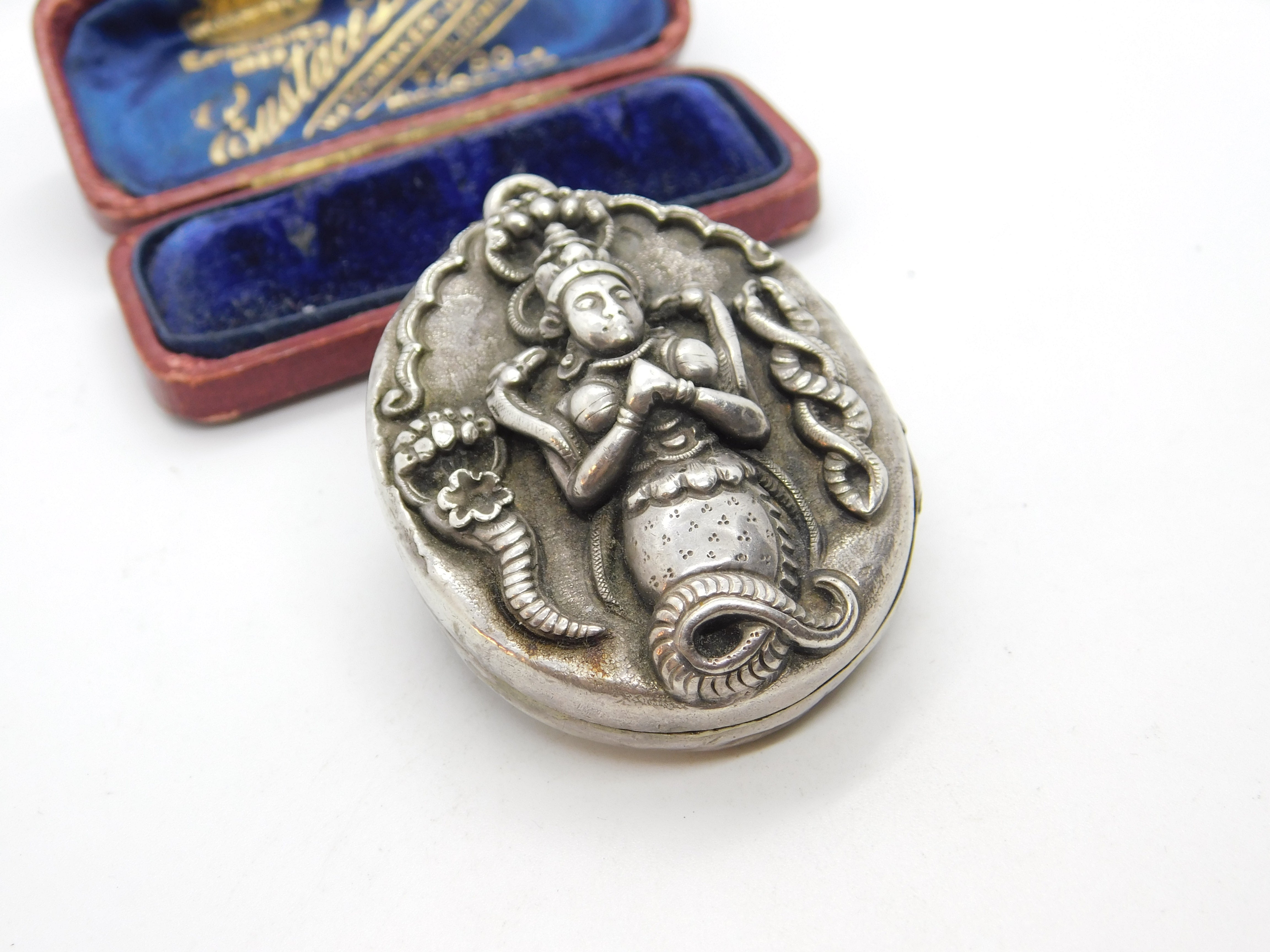 Victorian Large Sterling Silver Indian Locket or Pendant Antique c1880