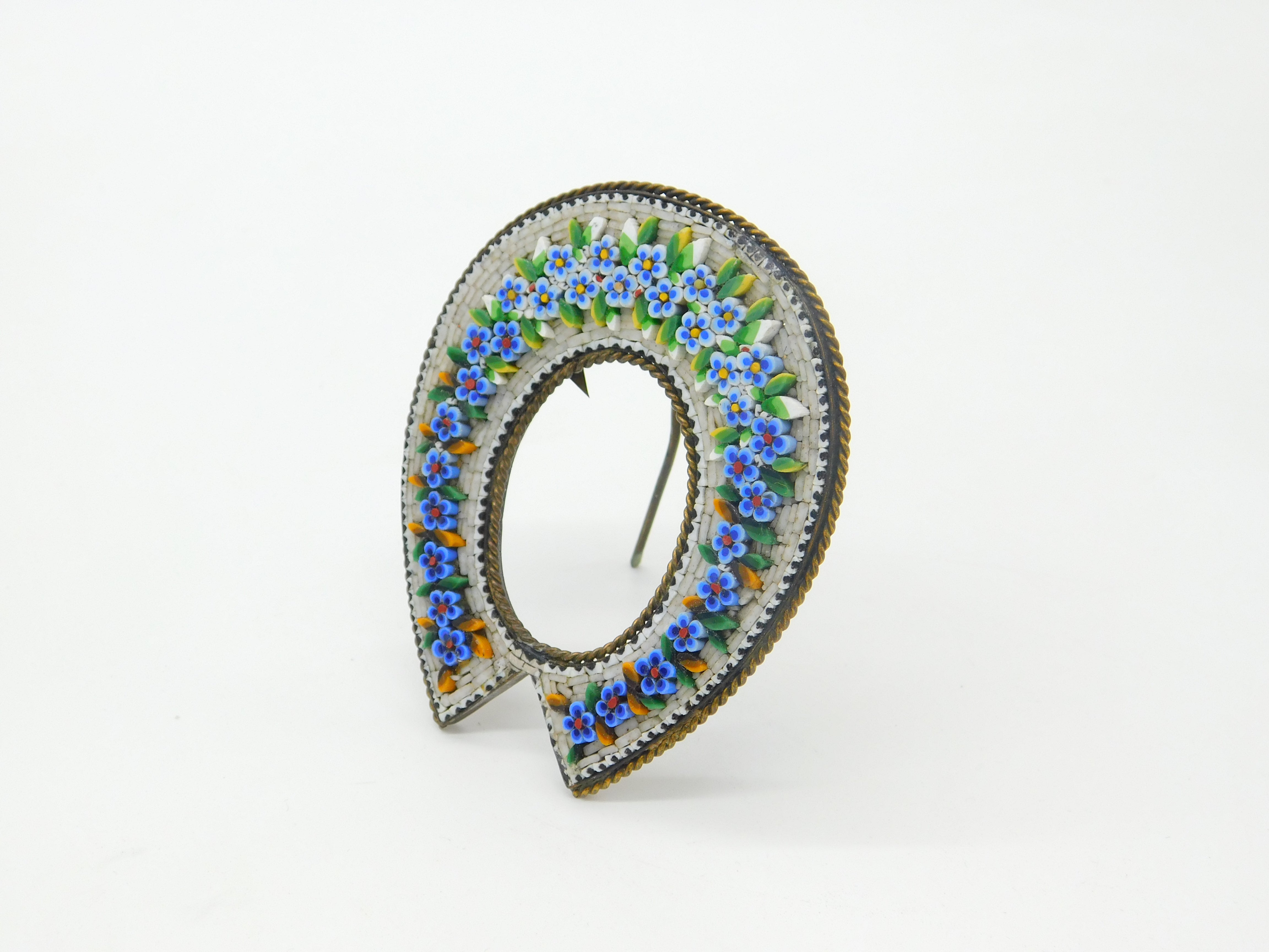Victorian Metal & Forget-Me-Not Flower Horseshoe Frame Antique c1860