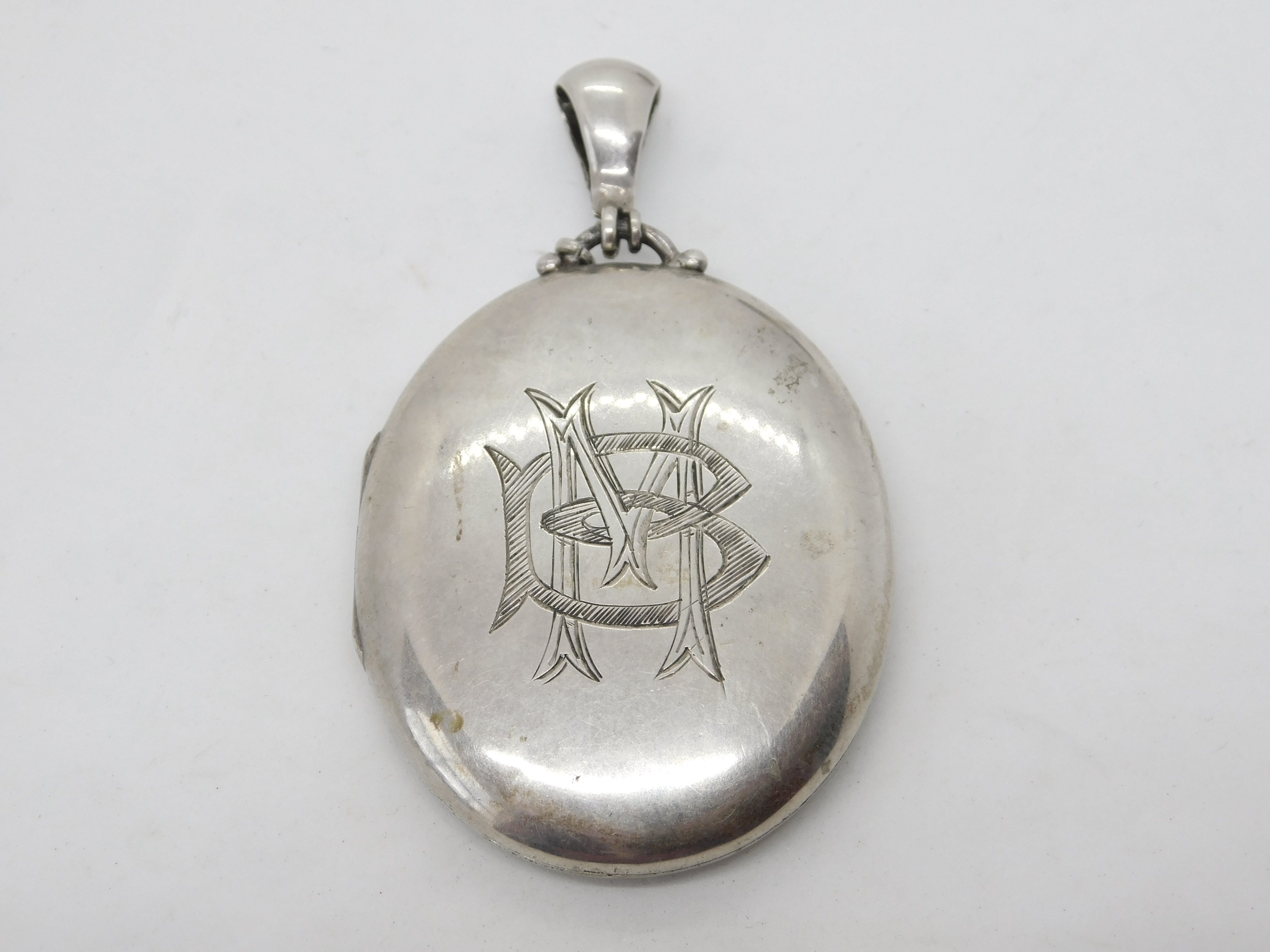 Victorian Large Sterling Silver Monogram Locket Pendant c1860 Antique