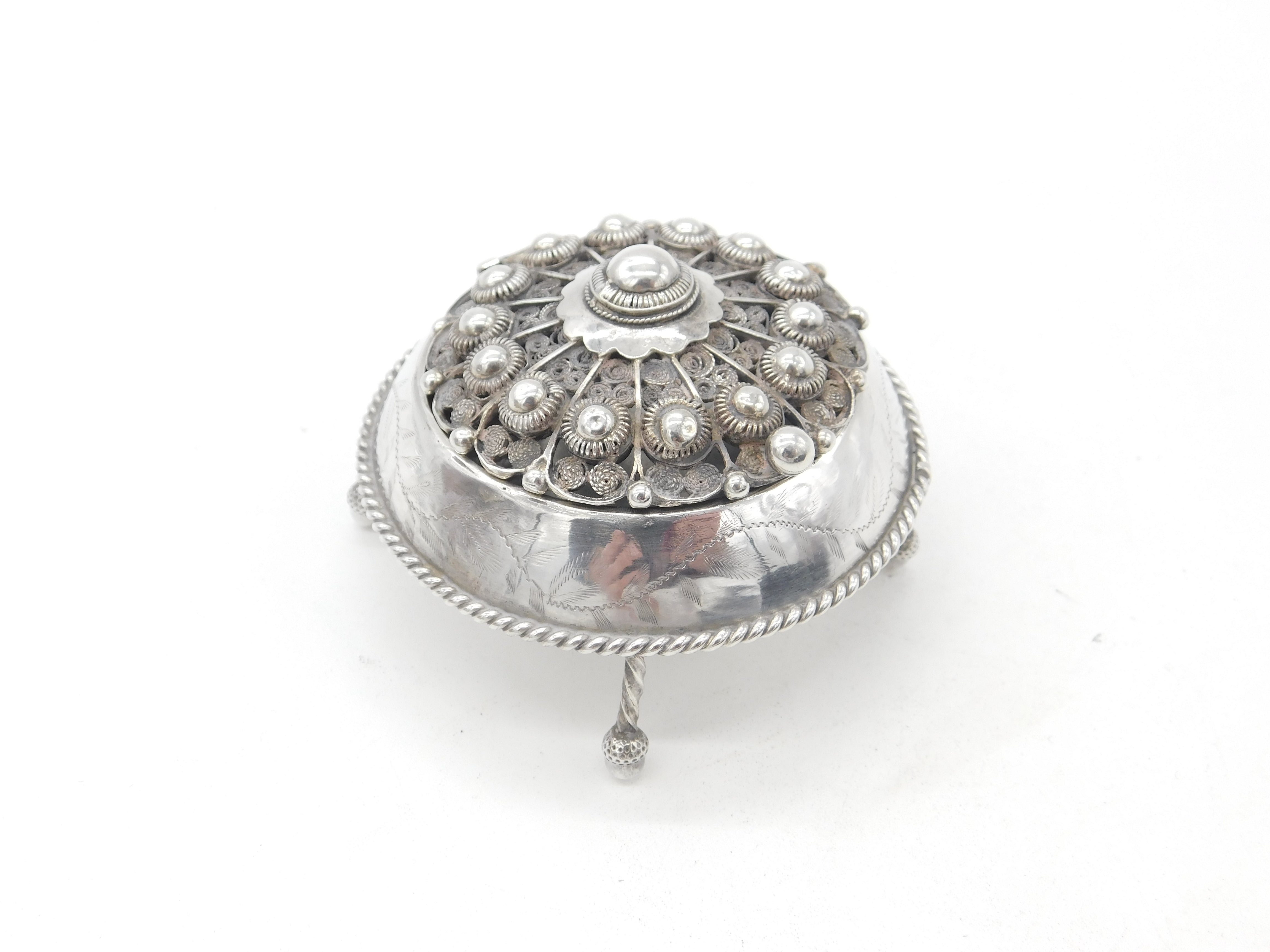 Victorian Middle Eastern Sterling Silver Trinket Box Acorn Feet Antique c1860