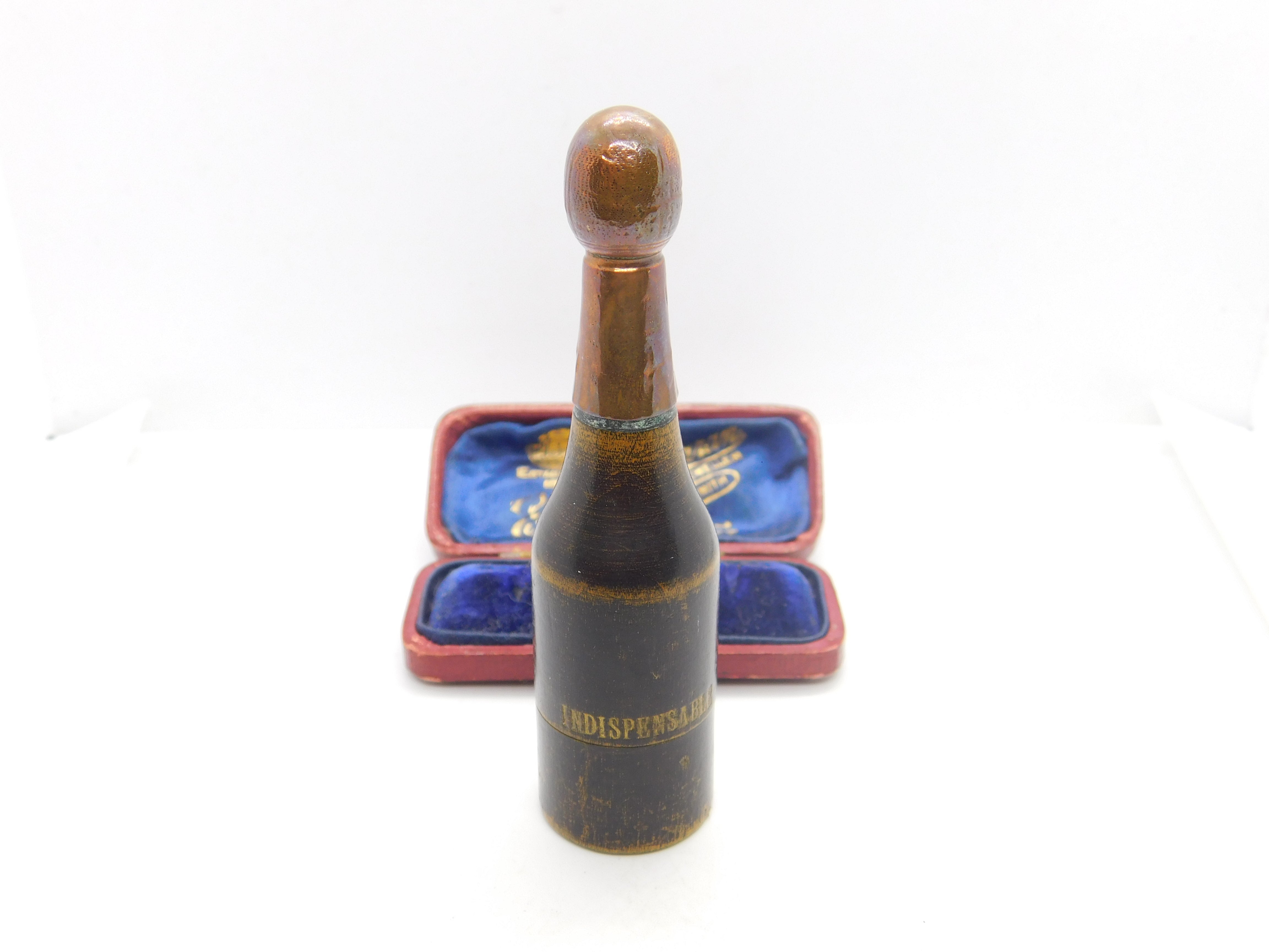 Victorian Novelty Champagne Bottle Needle Case & Thimble Holder Antique c1900