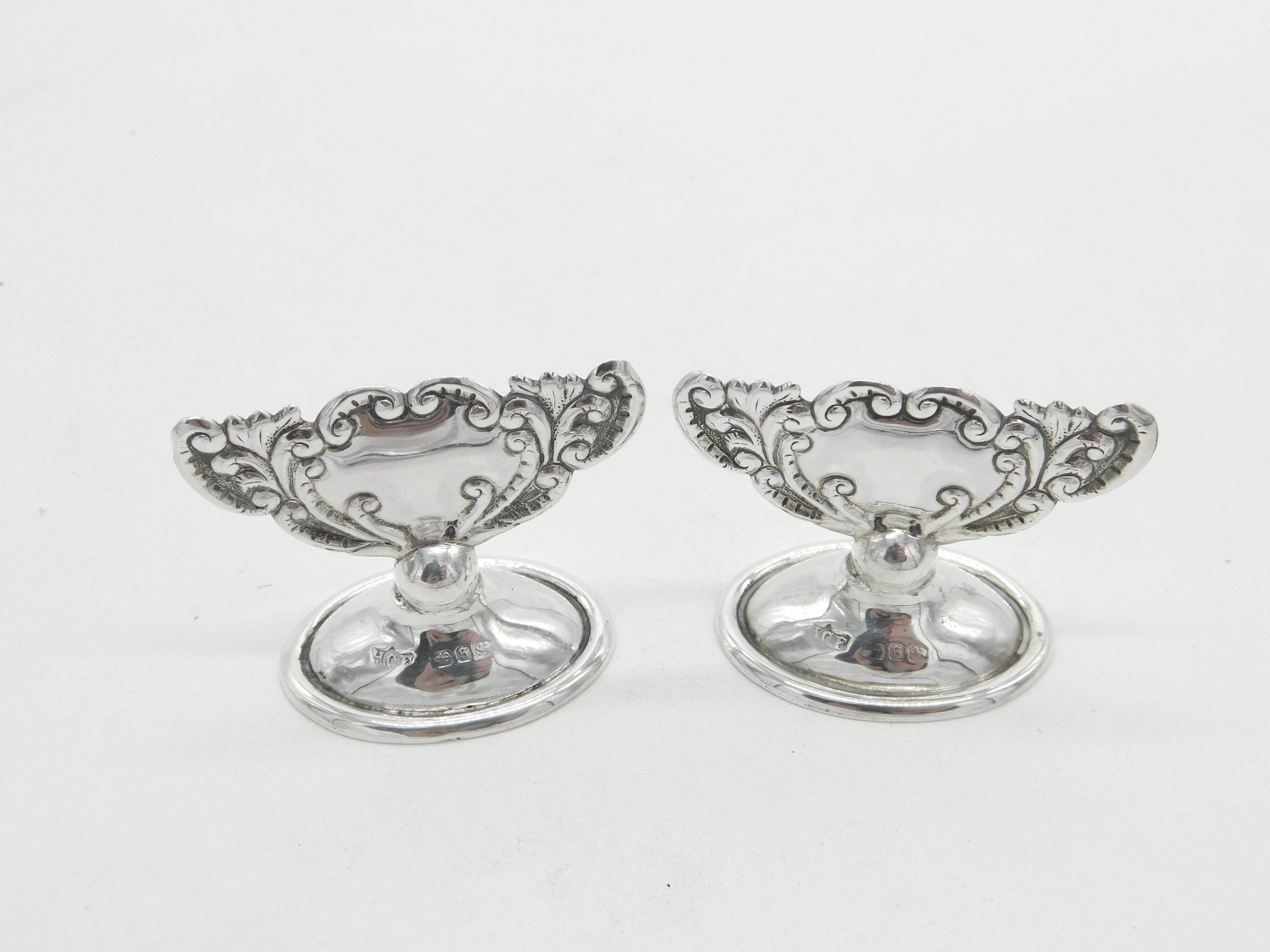 Victorian Pair of Sterling Silver Barrell Form Novelty Salt Cellars Antique 1875