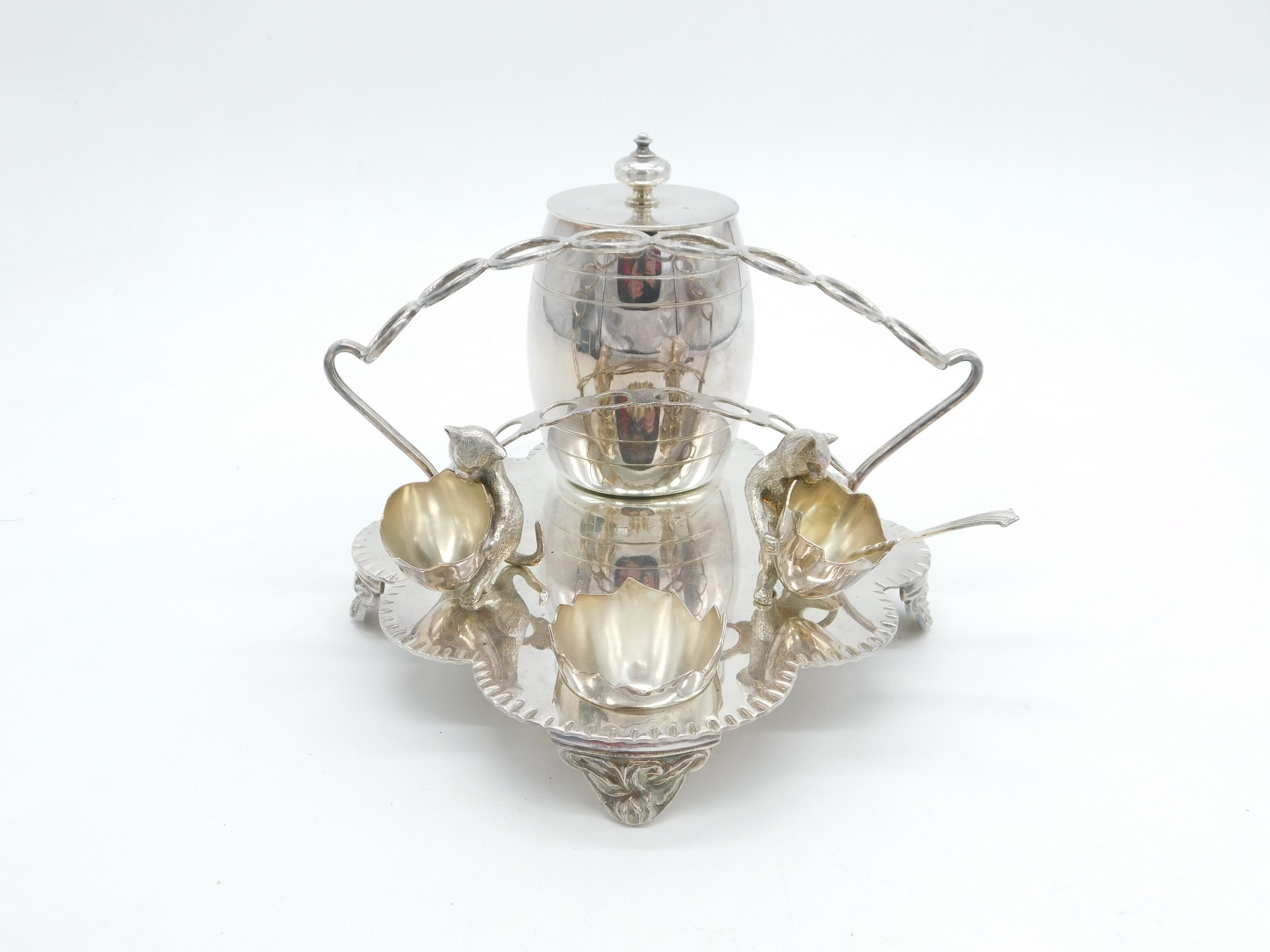 Victorian Novelty Silver Plated Large Boiled Egg Serving Set Antique c1890