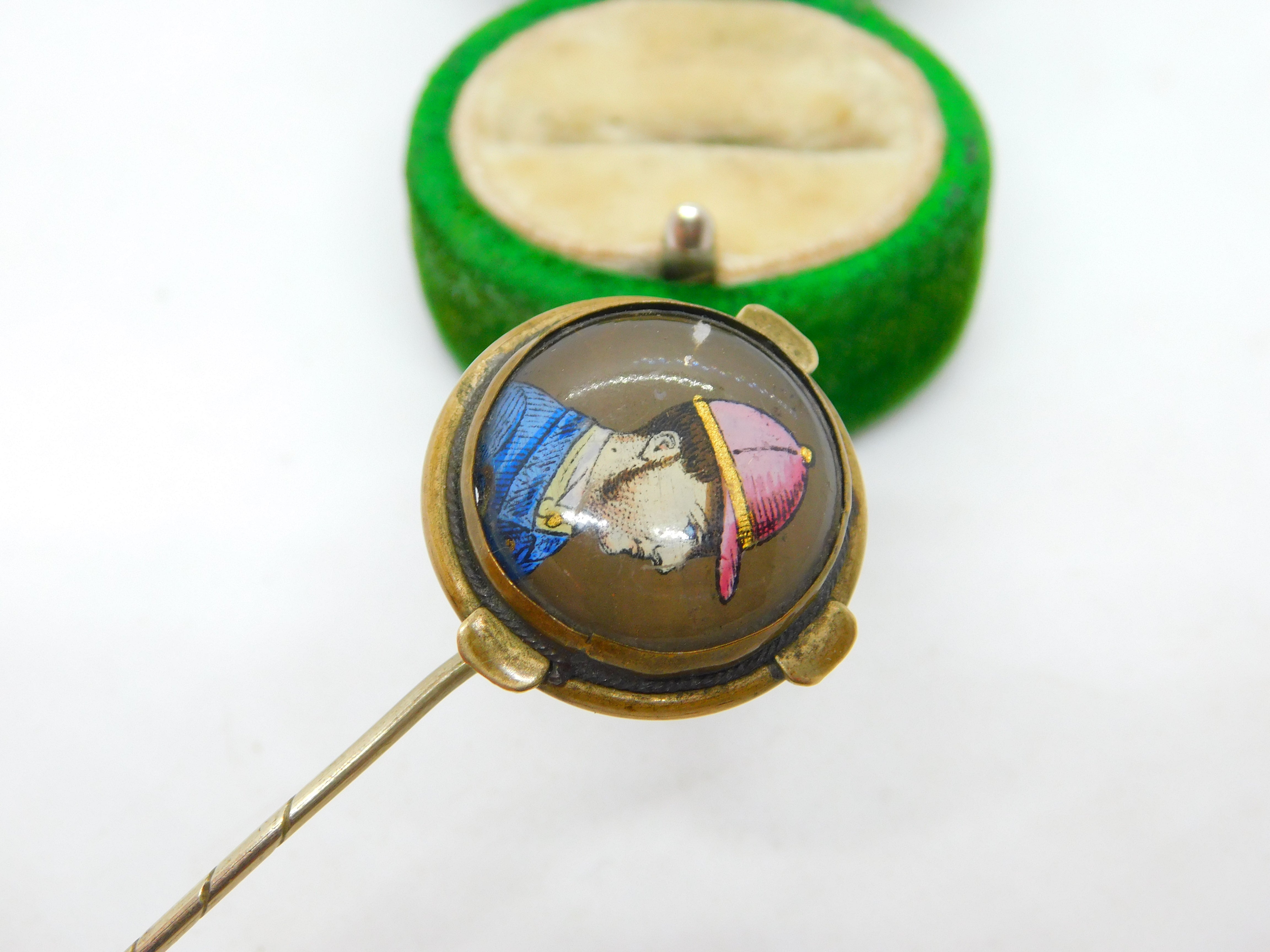 Victorian Pinchbeck Painted 'Fred Archer' Jockey Stick Pin Antique c1860