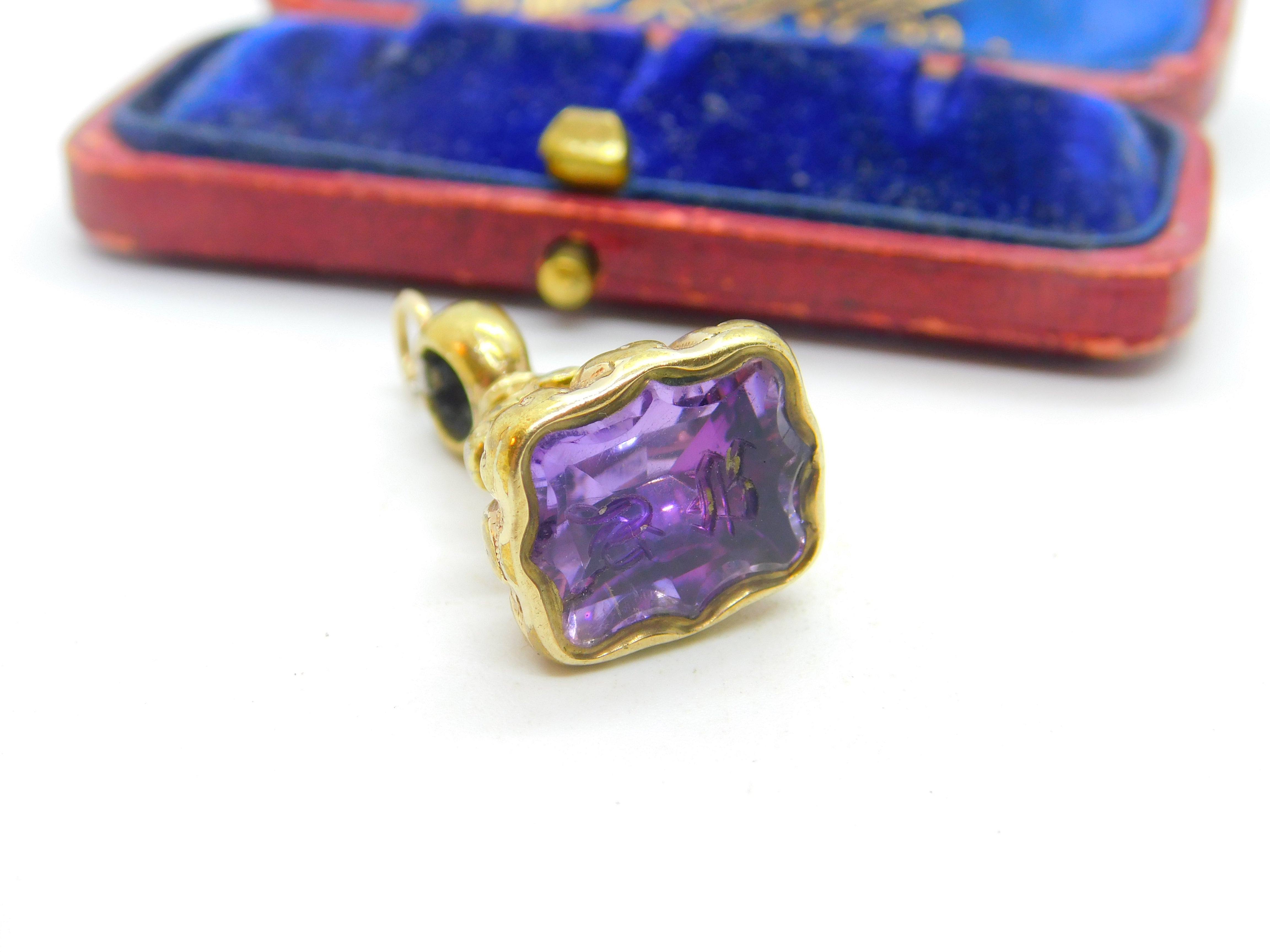 Victorian Rolled Gold & Carved Amethyst Monogram Intaglio Fob Seal c1860 Antique