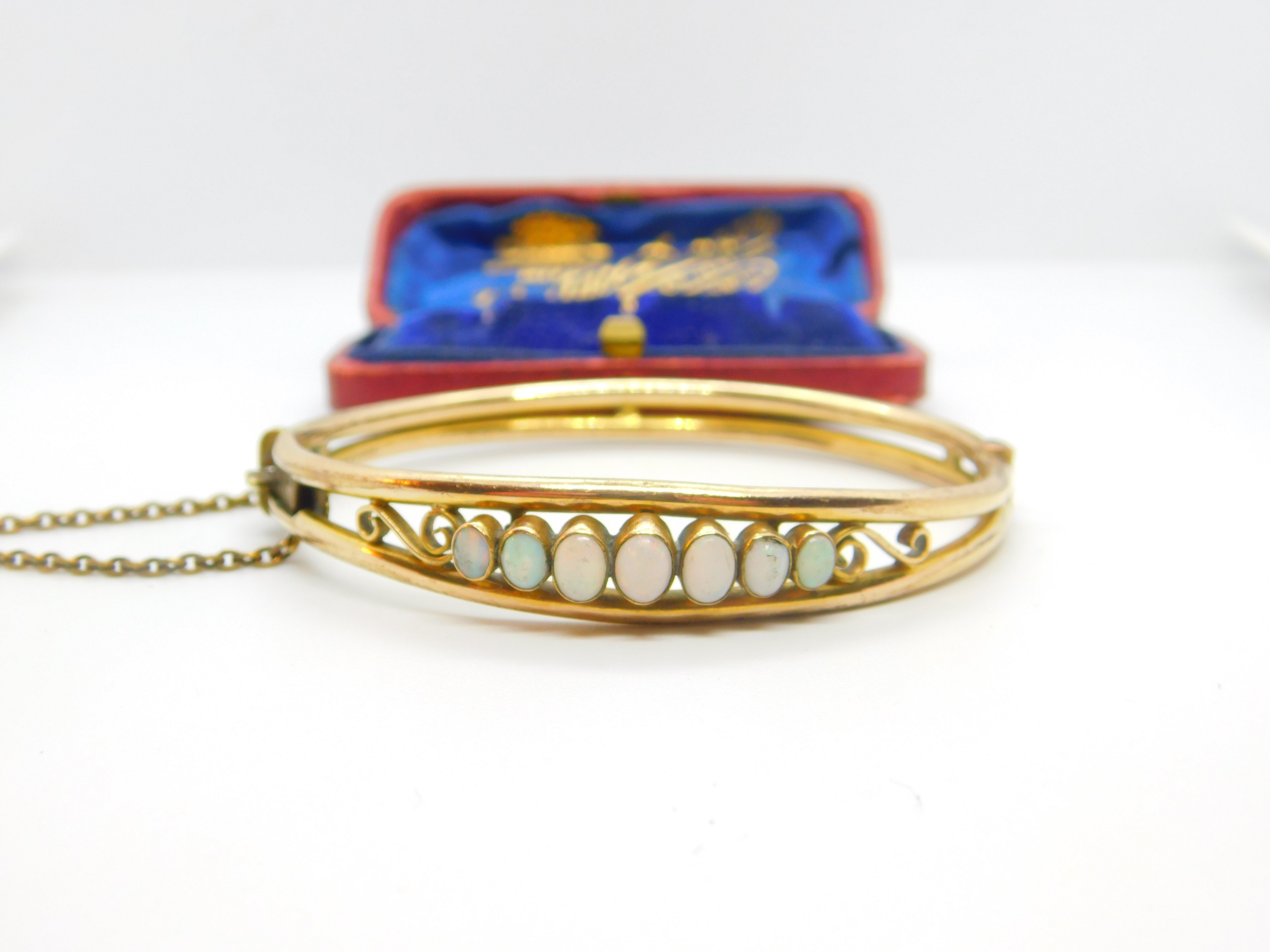 Victorian Rolled Gold & Cabochon Fire Opal Set Bangle Bracelet c1880 Antique