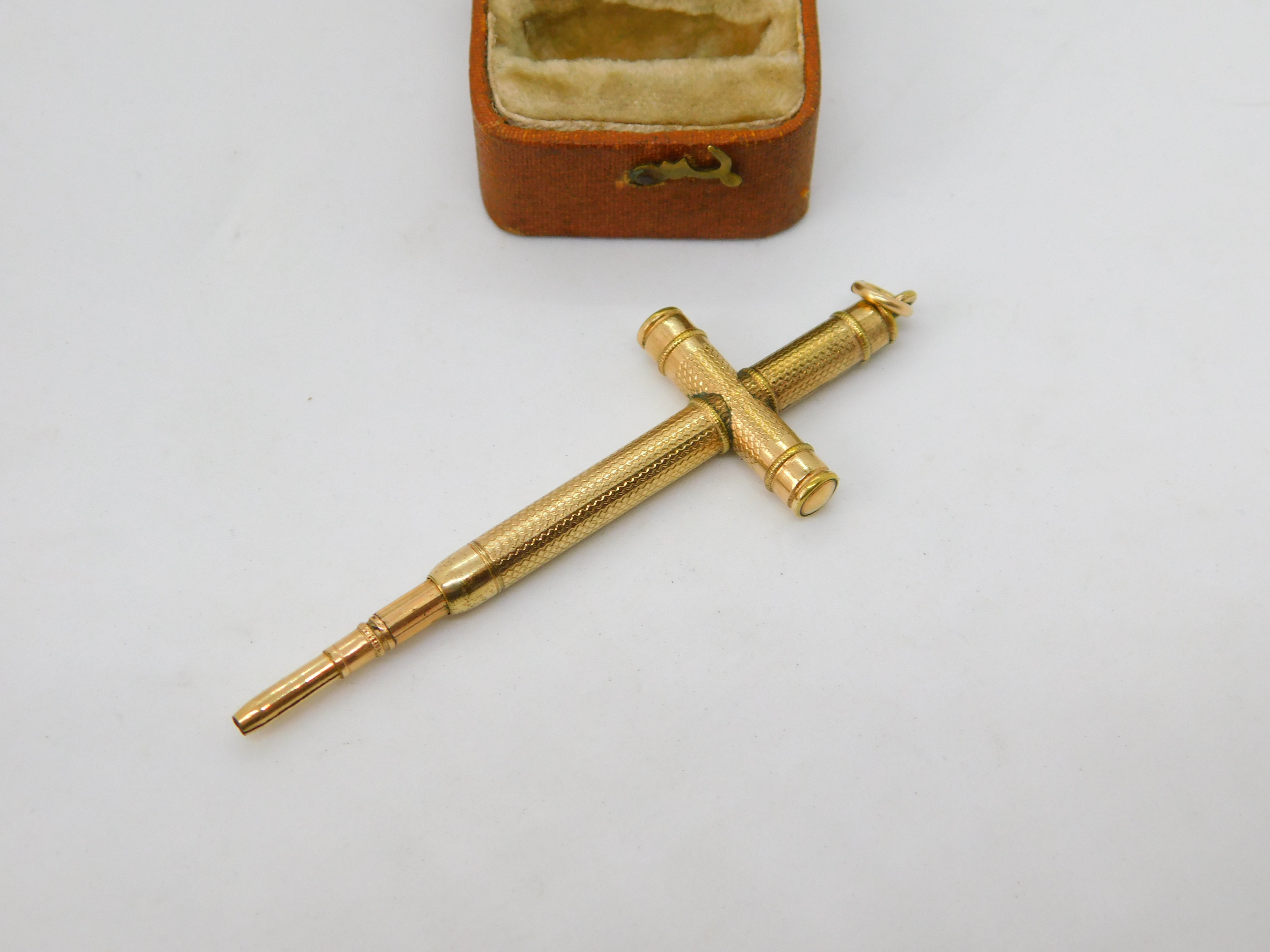 Victorian Rolled Gold Sword Shape Propelling Pencil Fob Pendant Antique c1880