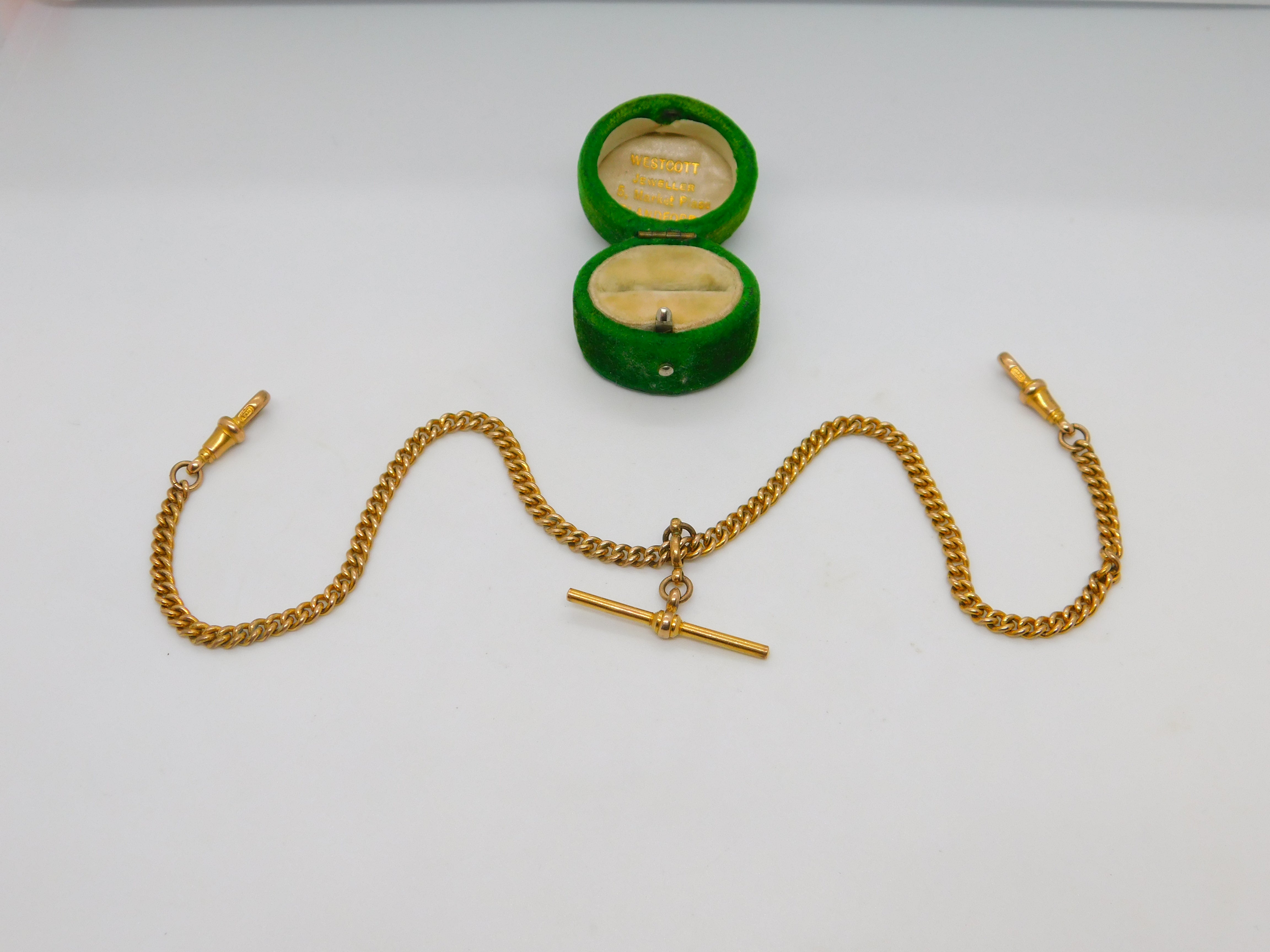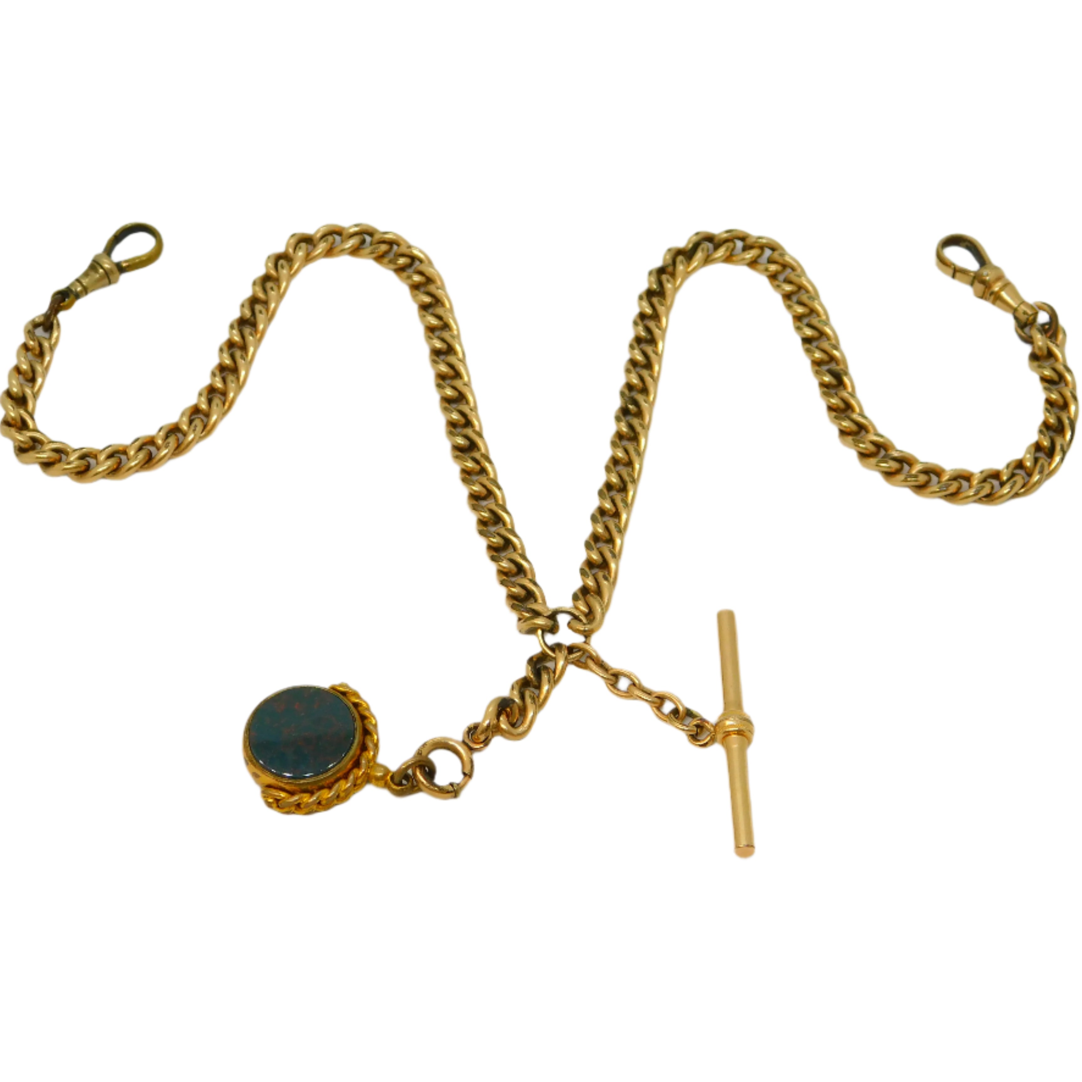 Victorian Rolled Gold Double Albert Watch Chain T-Bar & Fob Antique c1890