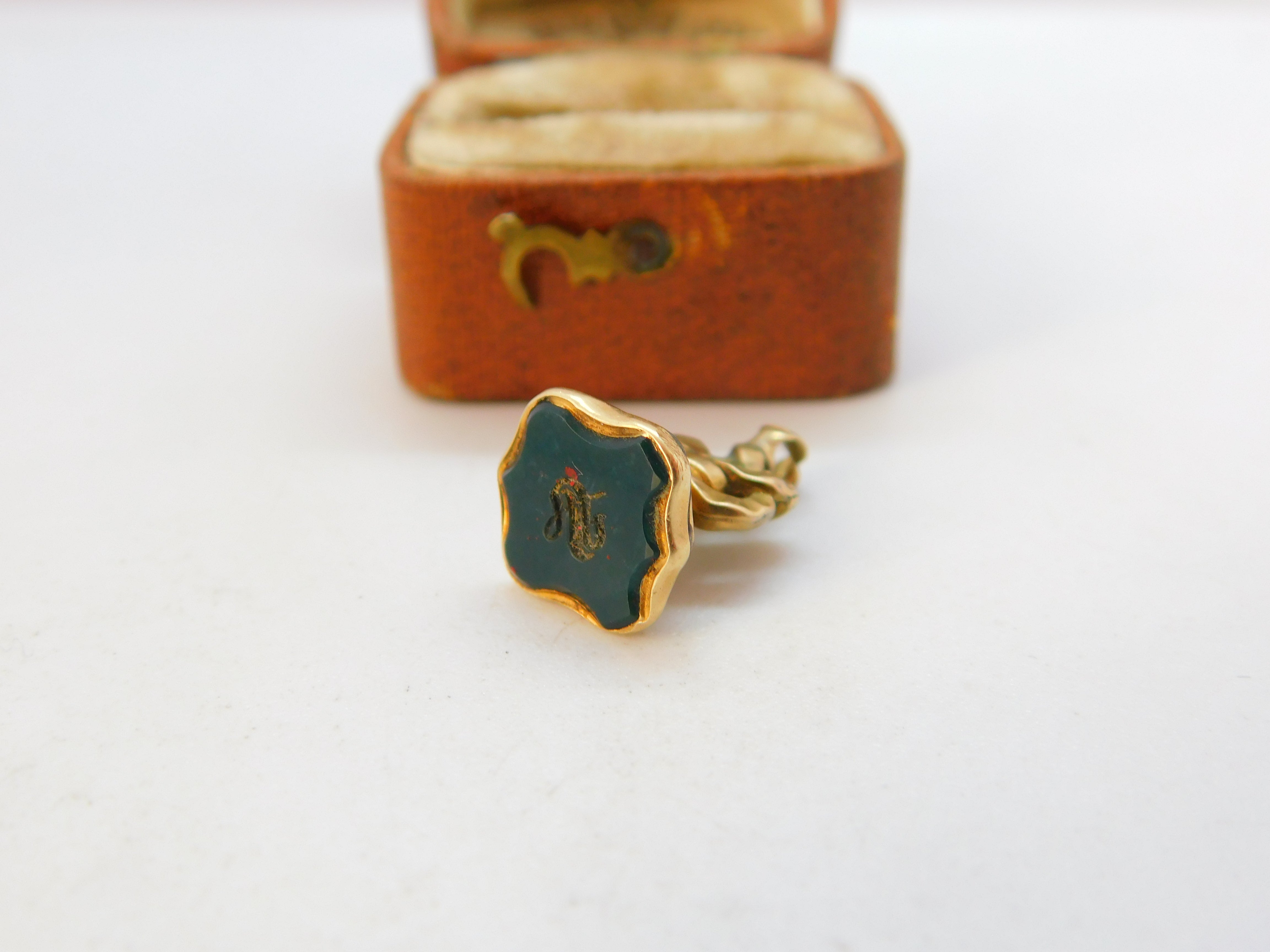 Victorian Rolled Gold Carved 'S' Bloodstone Intaglio Fob Seal c1840 Antique