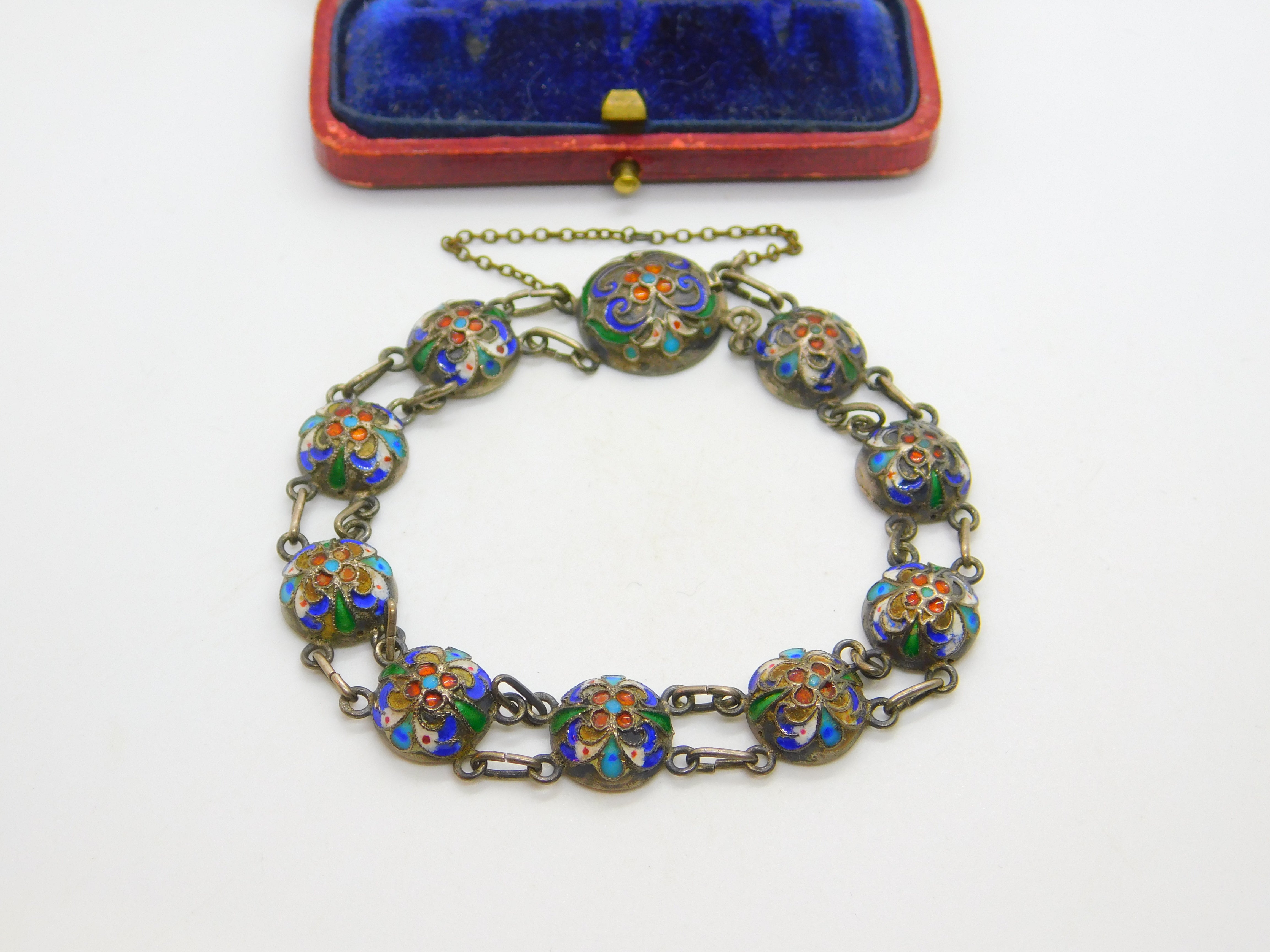Victorian Russian Sterling Silver Colourful Enamel Floral Panel Bracelet c1880