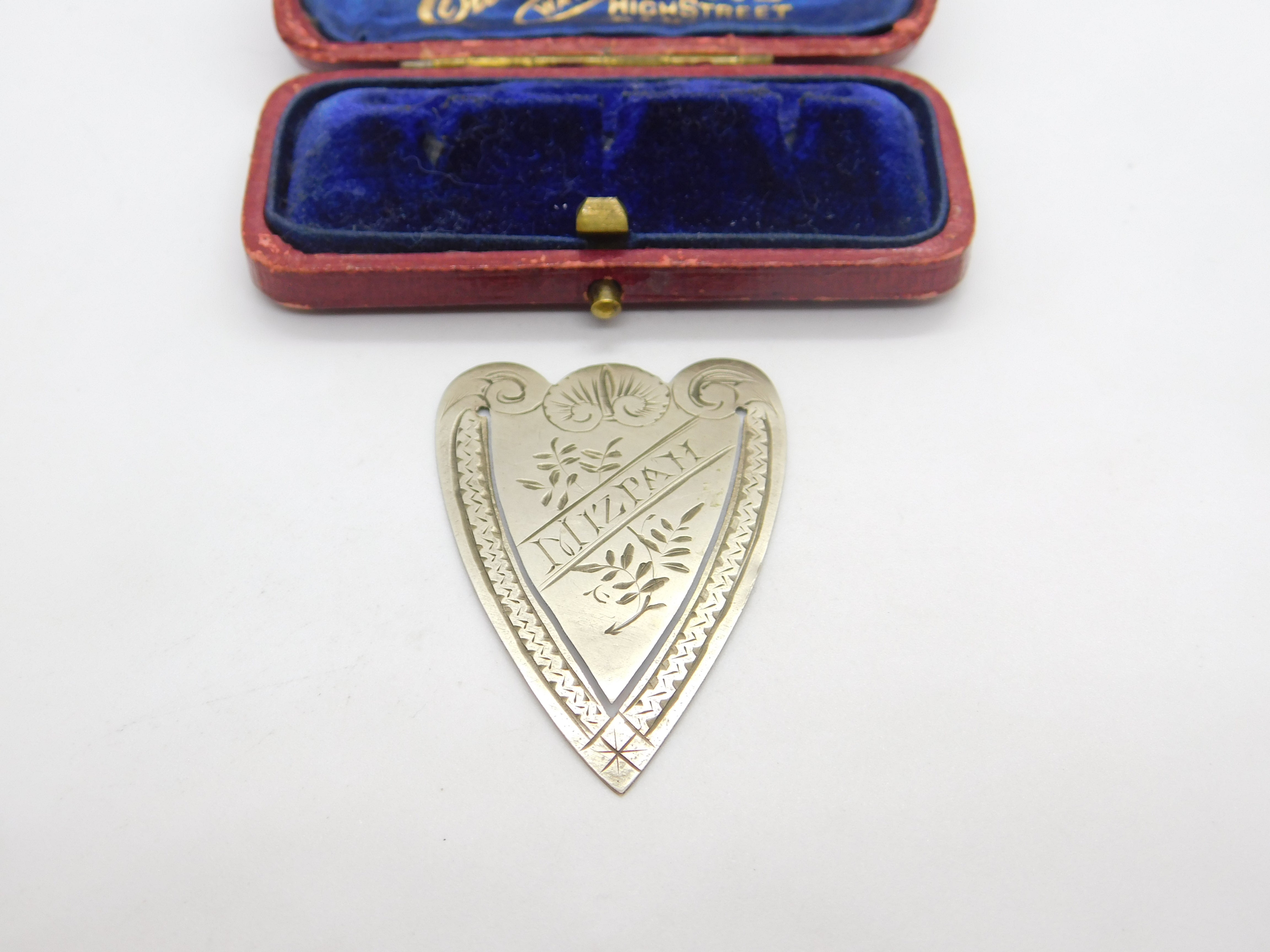 Victorian Silver Plated Hebrew Mizpah Heart Form Bookmark Antique c1860
