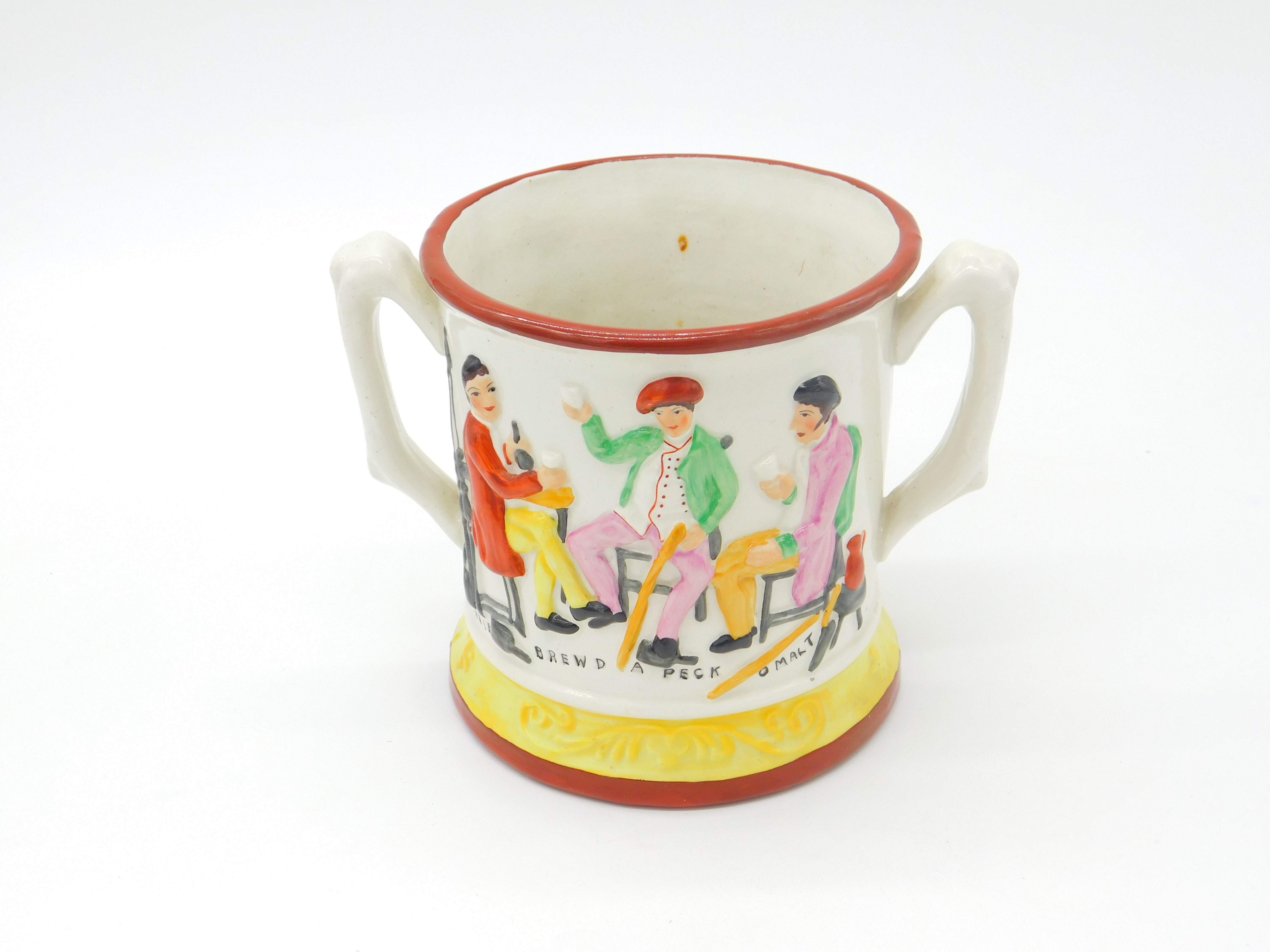 Victorian Staffordshire Frog Mug with Robbie Burns Poem Antique c1850 Loving Cup