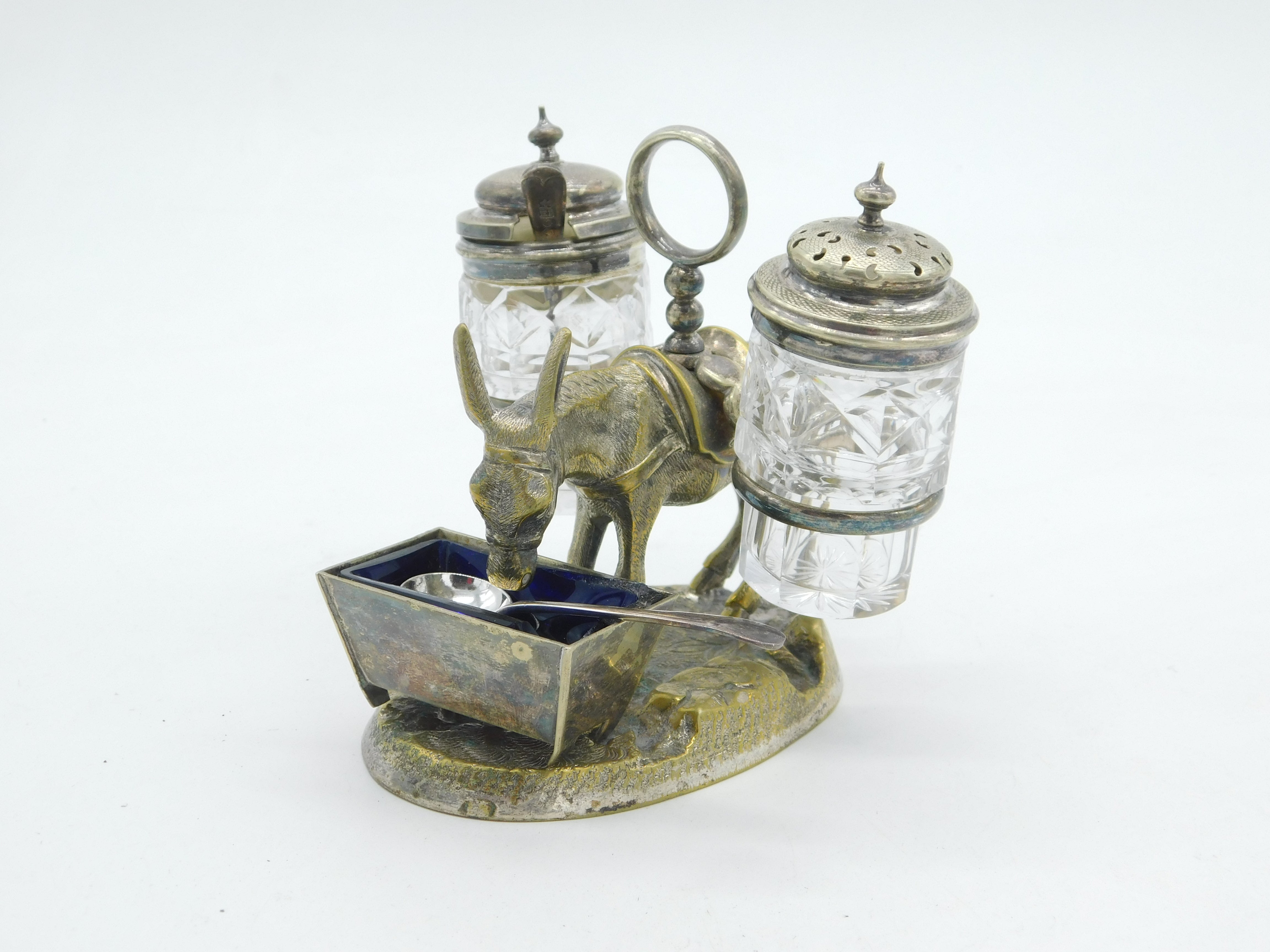Victorian Silver Plated Novelty Donkey Form Cruet Set Antique c1880 Kitemark