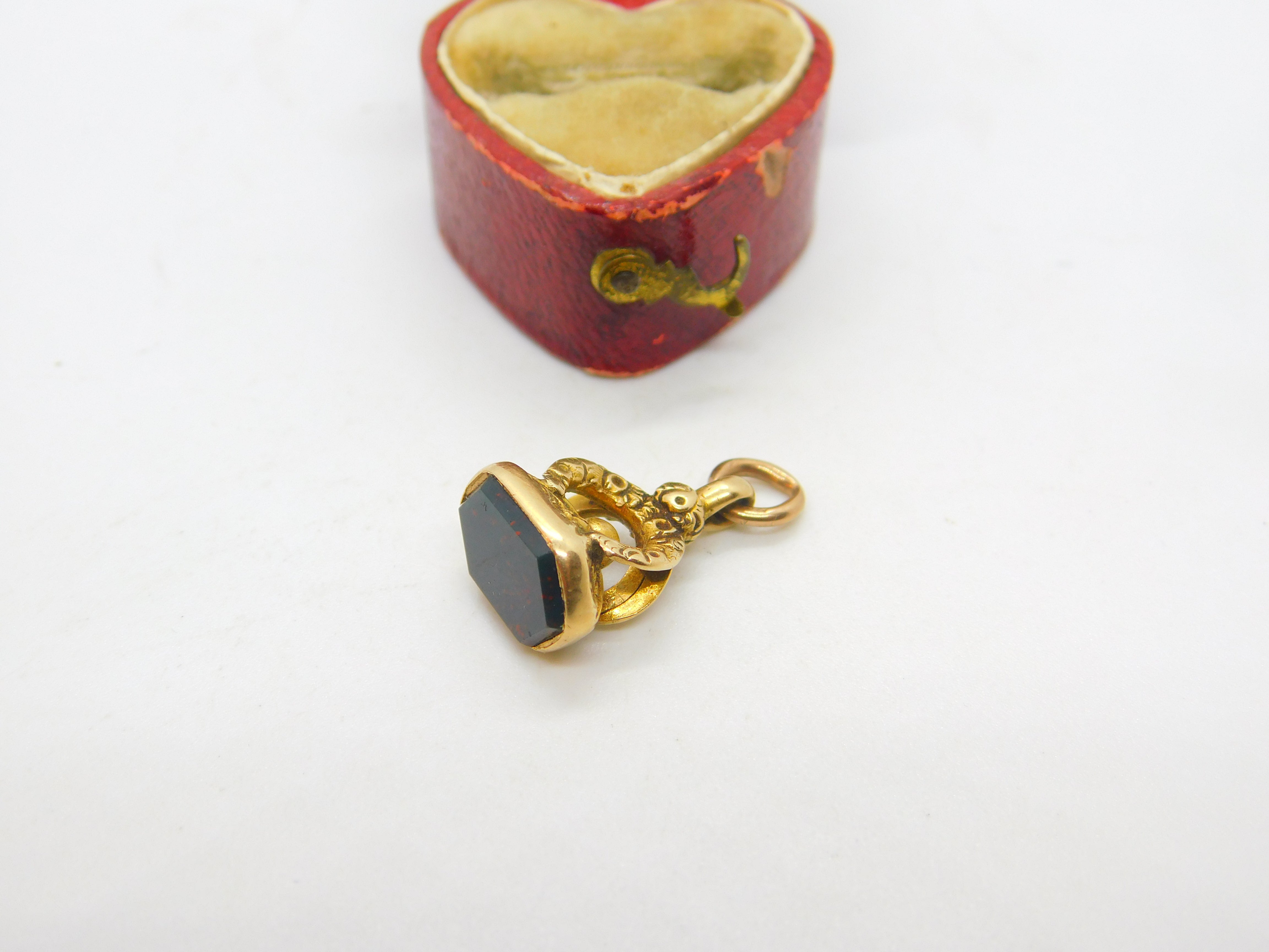Victorian Small 15ct Yellow Gold & Bloodstone Set Fob Seal Antique c1880