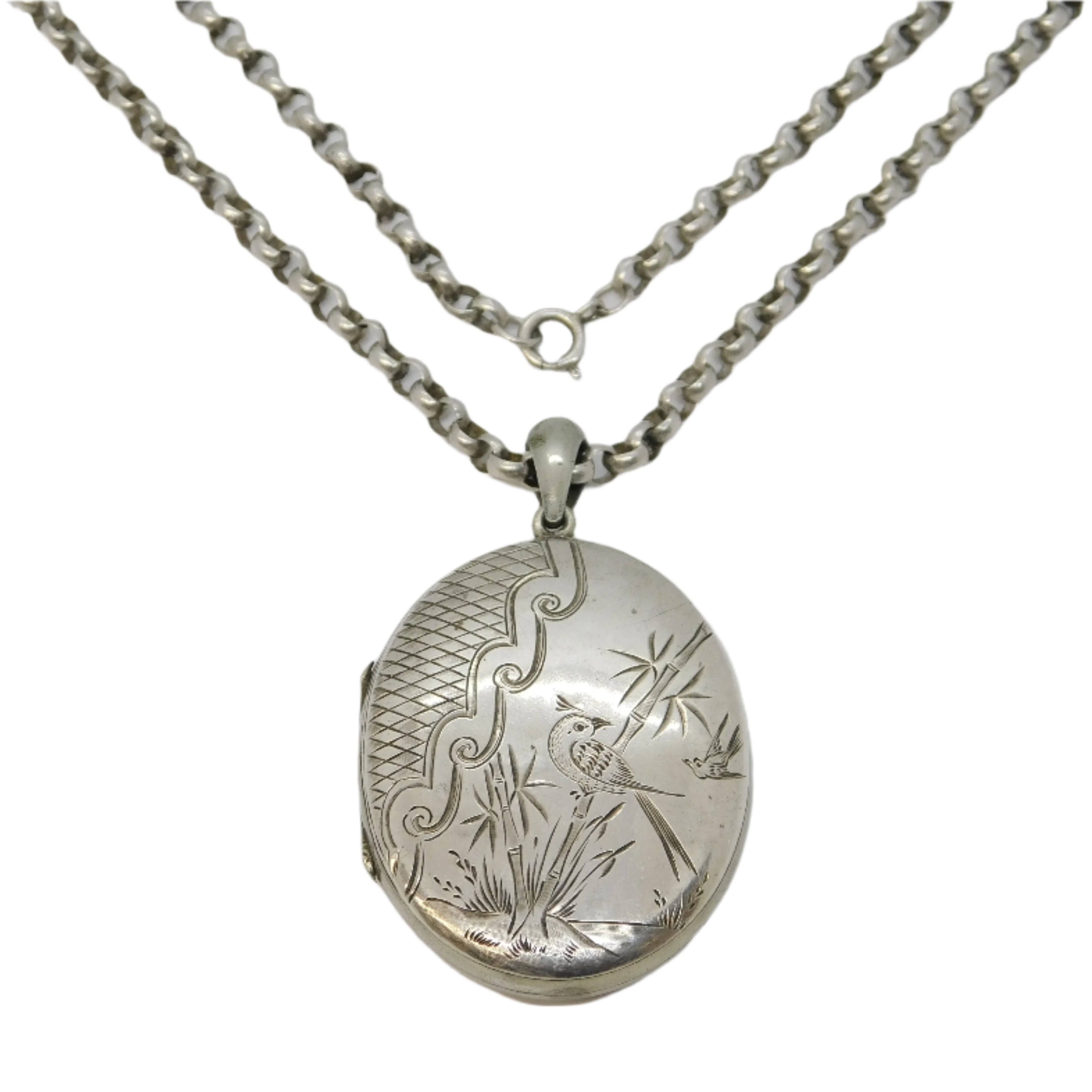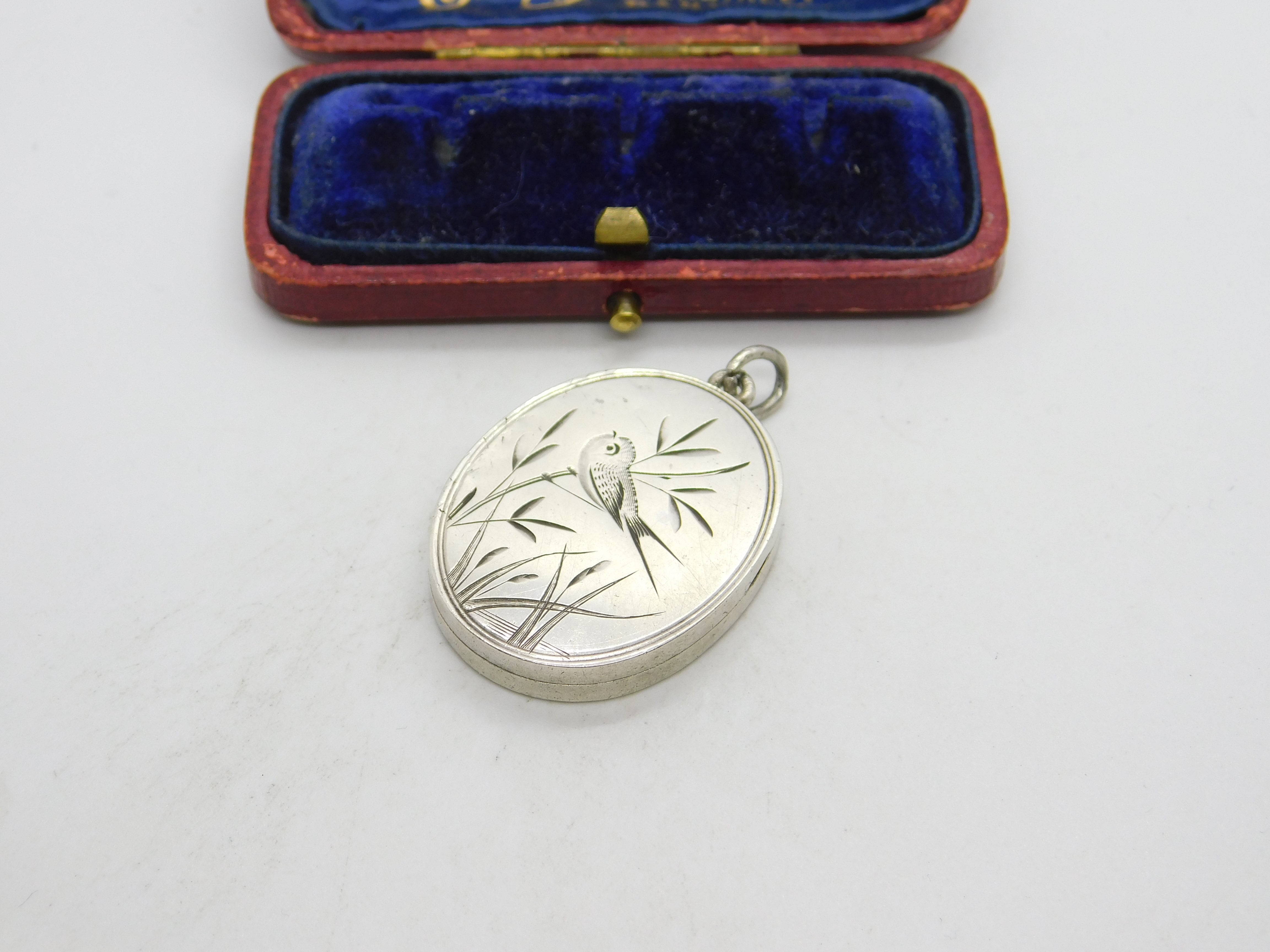 Victorian Sterling Silver Aesthetic Movement Swallow Sweetheart Locket 1880