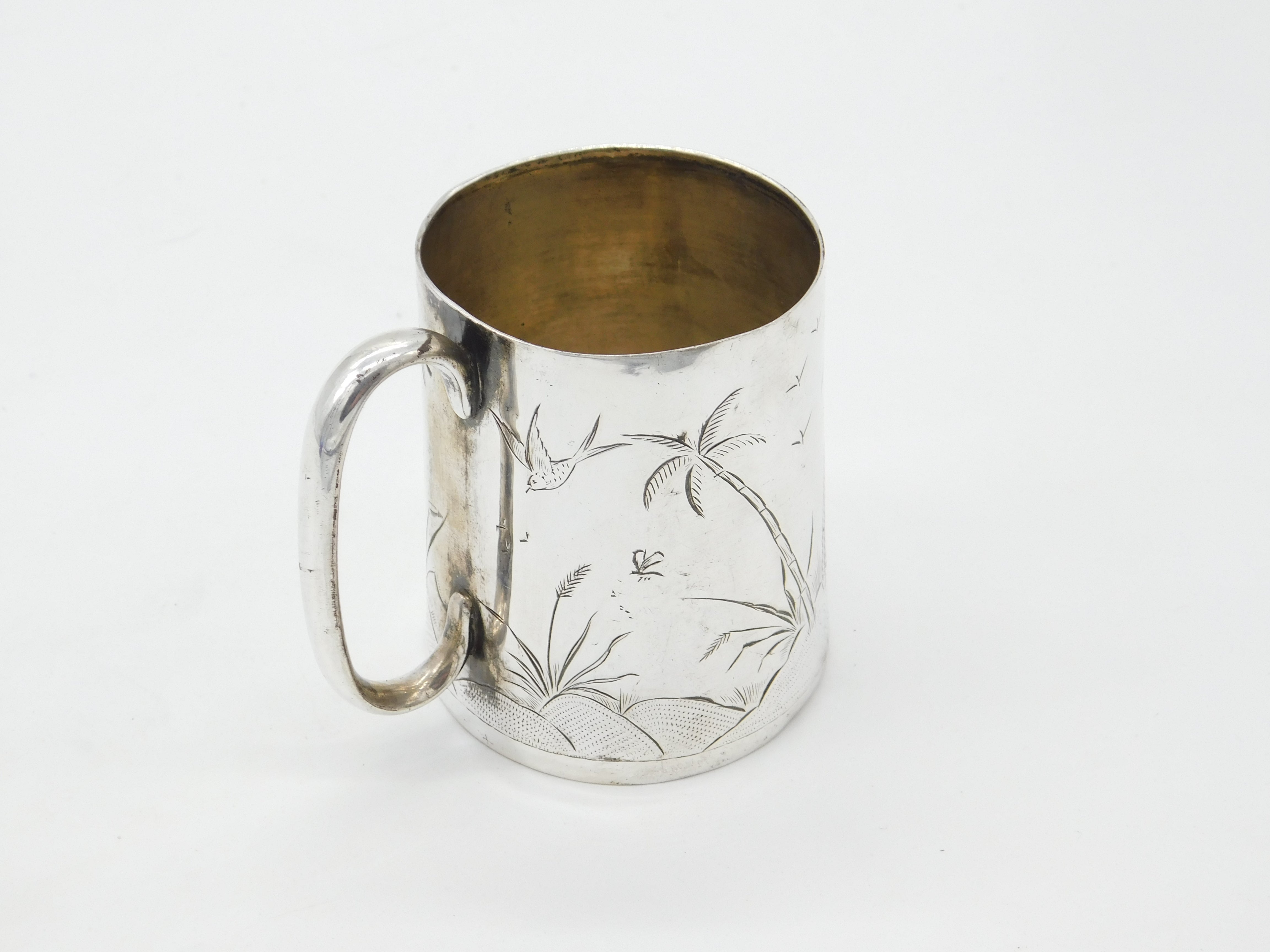 Victorian Sterling Silver Aesthetic Movement Christening Mug Antique c1860