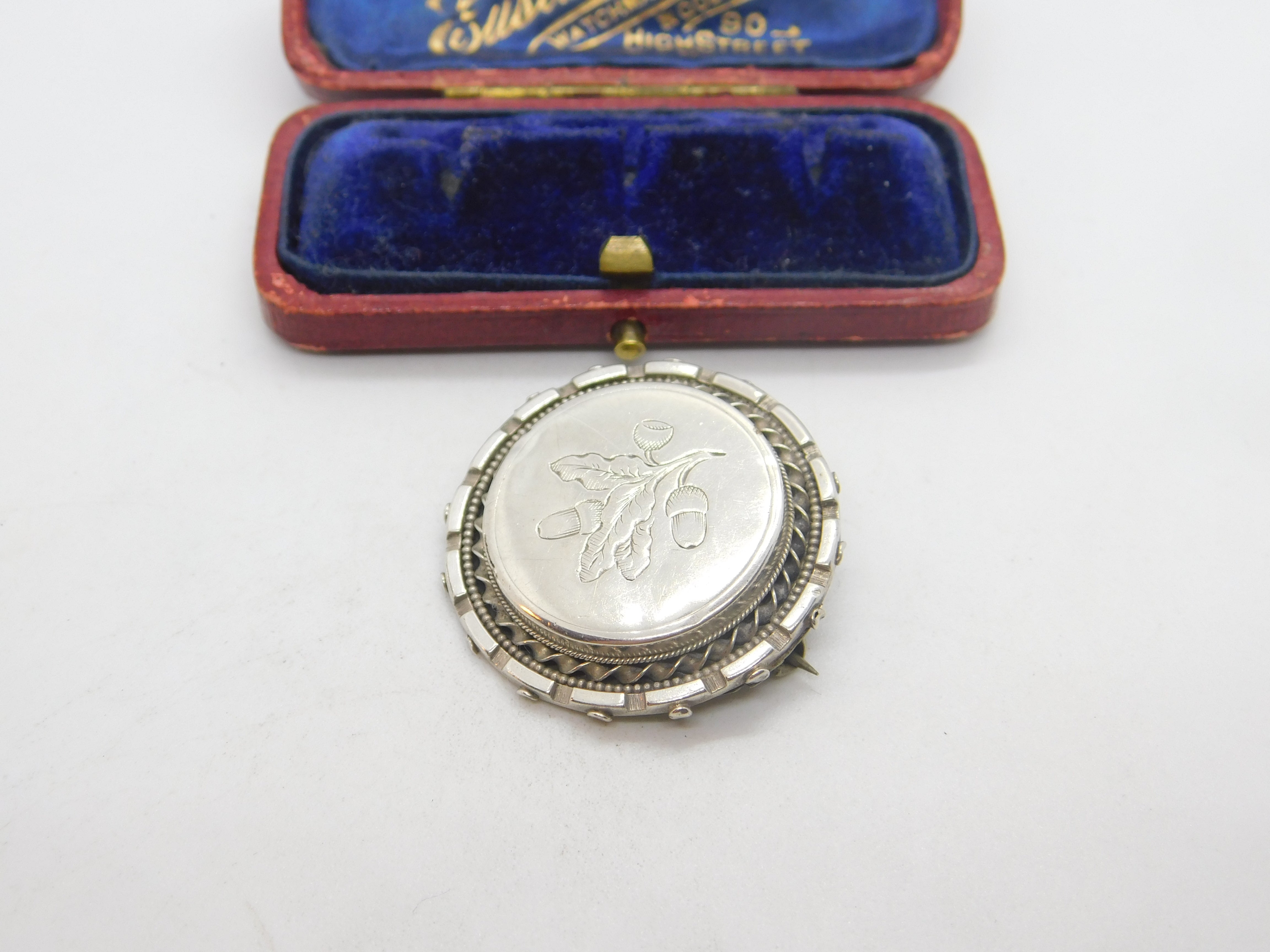 Victorian Sterling Silver Acorn Oak Leaf Mourning Brooch c1880 Antique