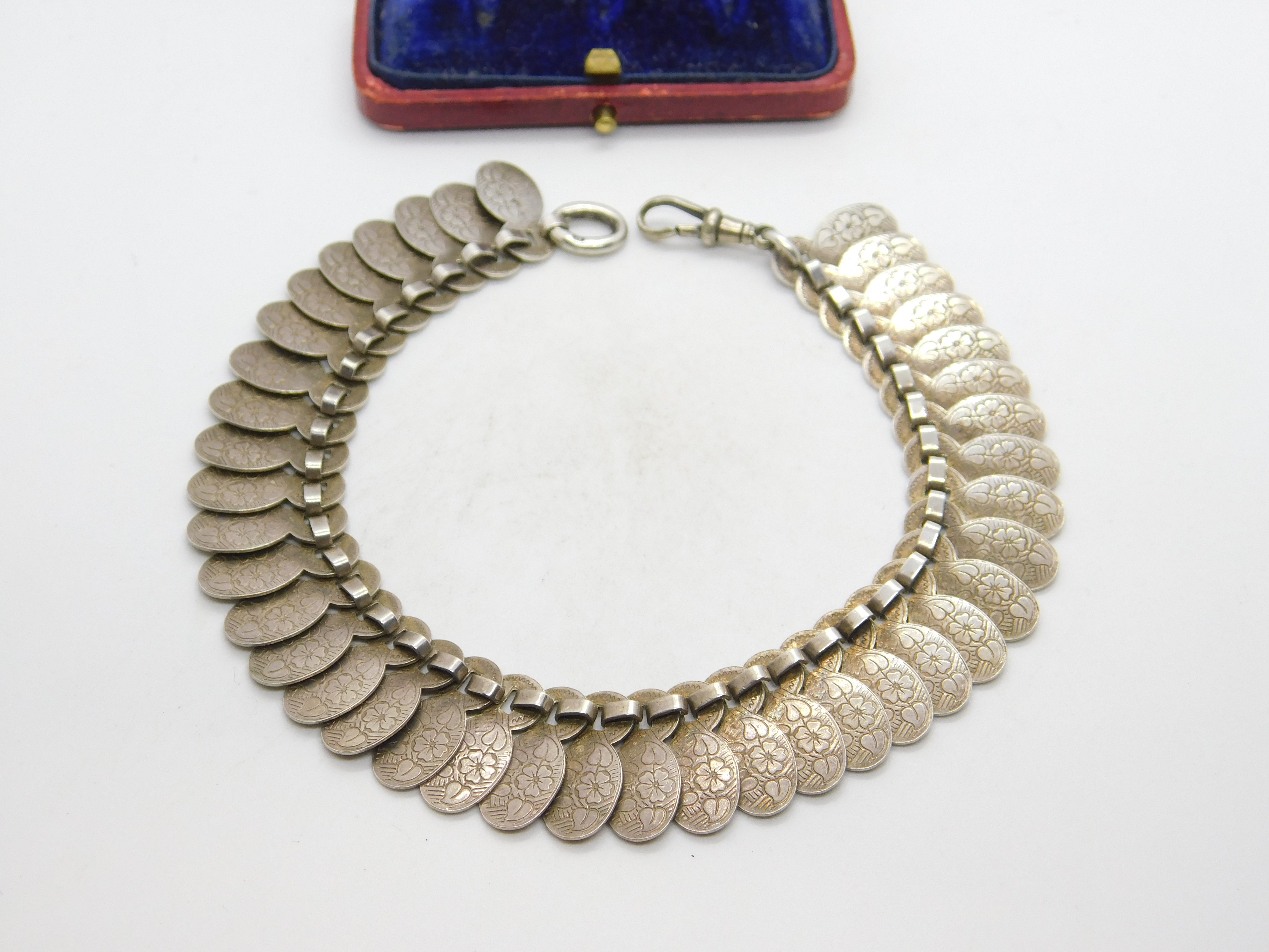 Victorian Sterling Silver Aesthetic Floral Pattern Tassel Bracelet Antique c1900
