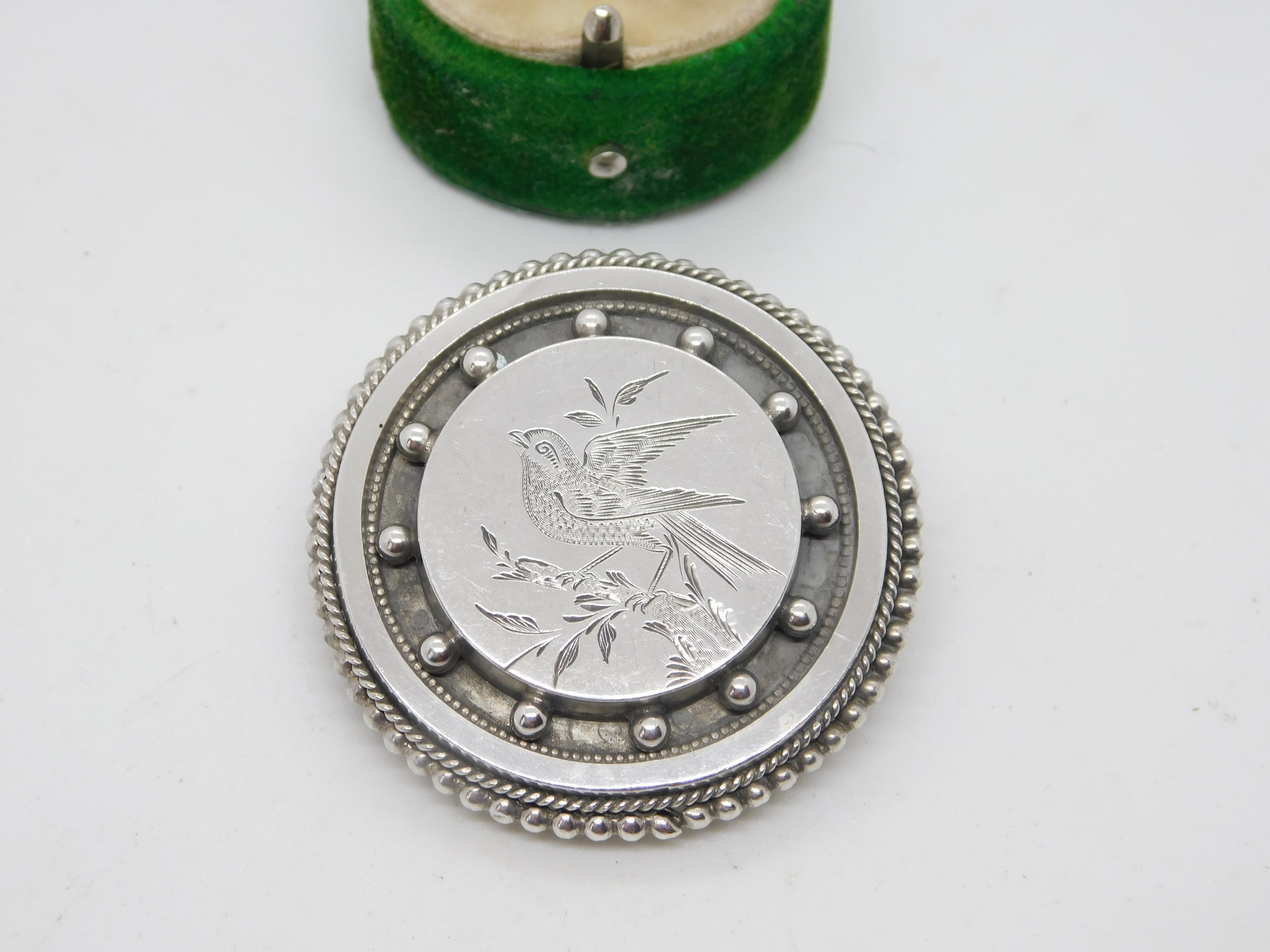Victorian Sterling Silver Aesthetic Bird Sweetheart Brooch Antique c1880