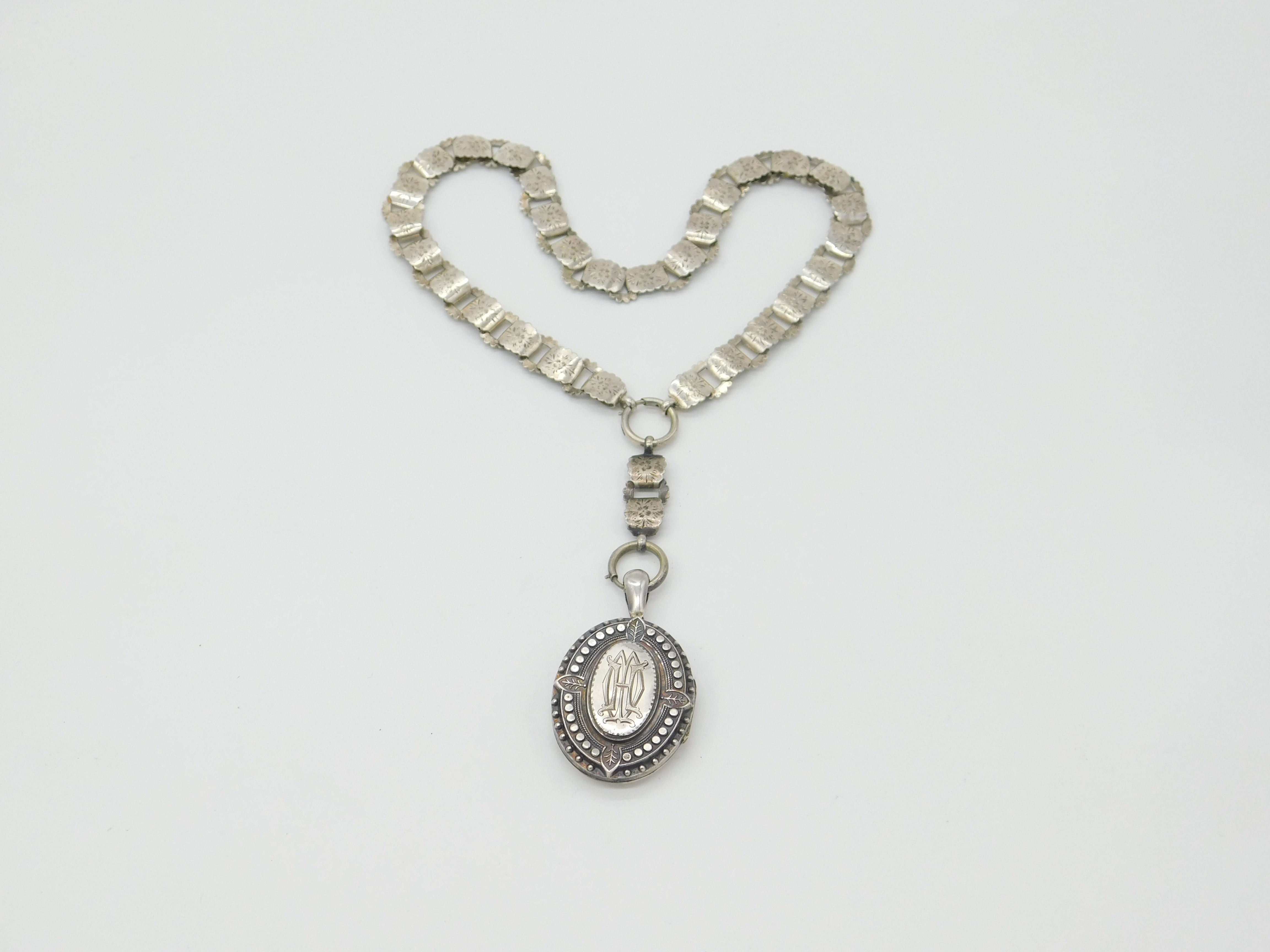 Victorian Sterling Silver Aesthetic Collar Locket Necklace 1882 Antique Chester