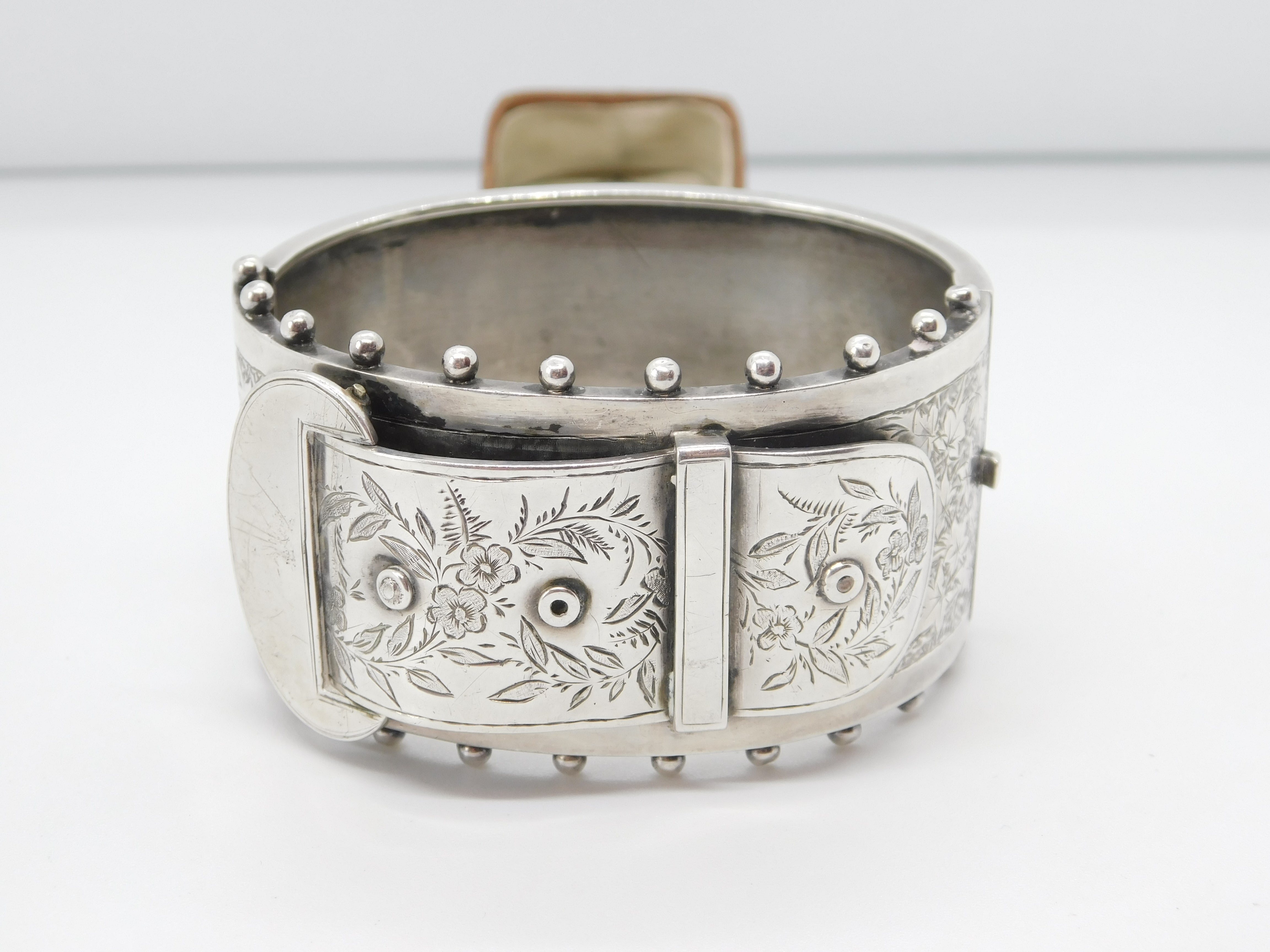 Victorian Sterling Silver Aesthetic Movement Buckle Sweetheart Bangle c1880
