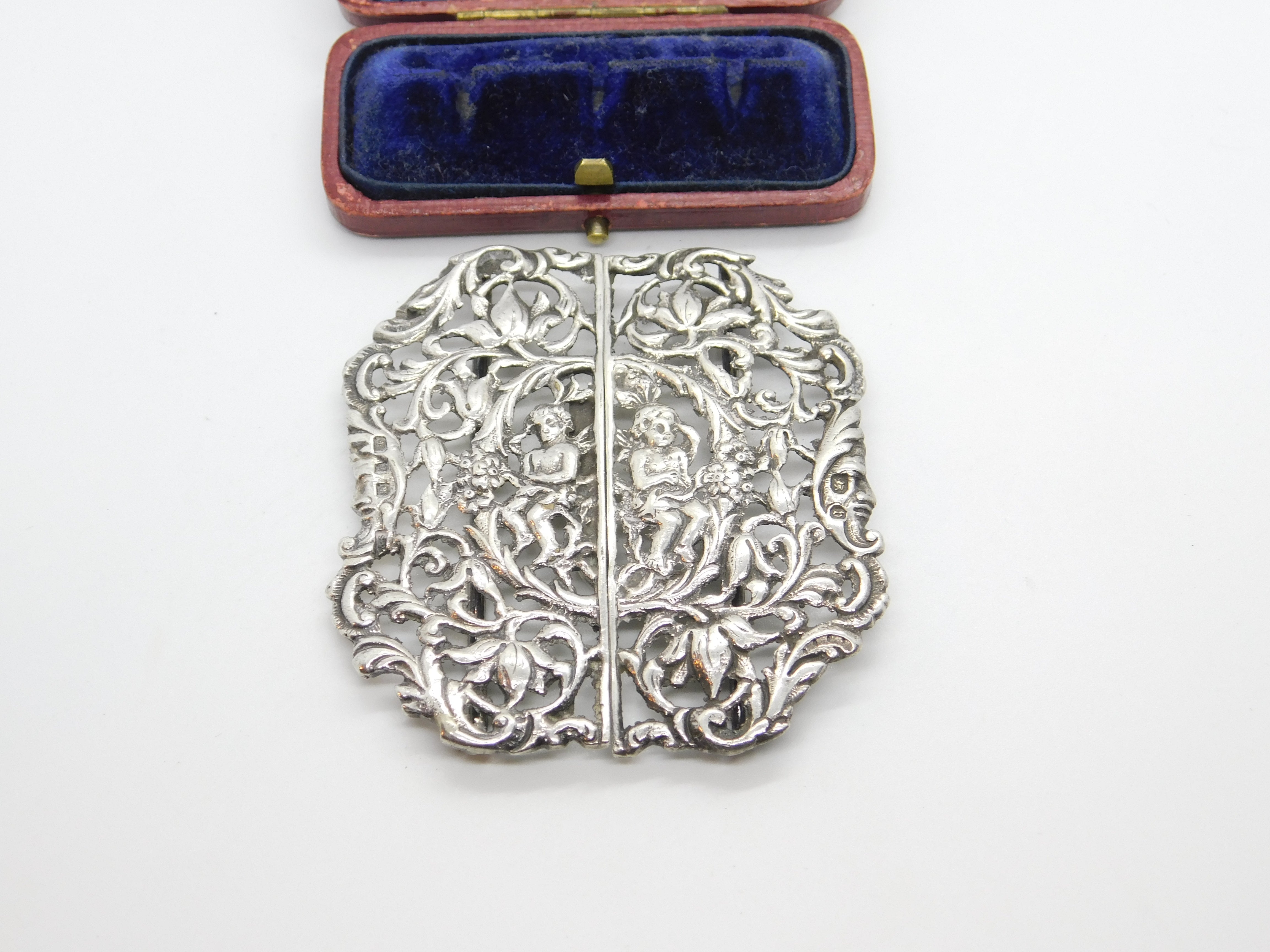 Victorian Sterling Silver Cherub & Grape Pattern Nurses Buckle 1876 Birmingham