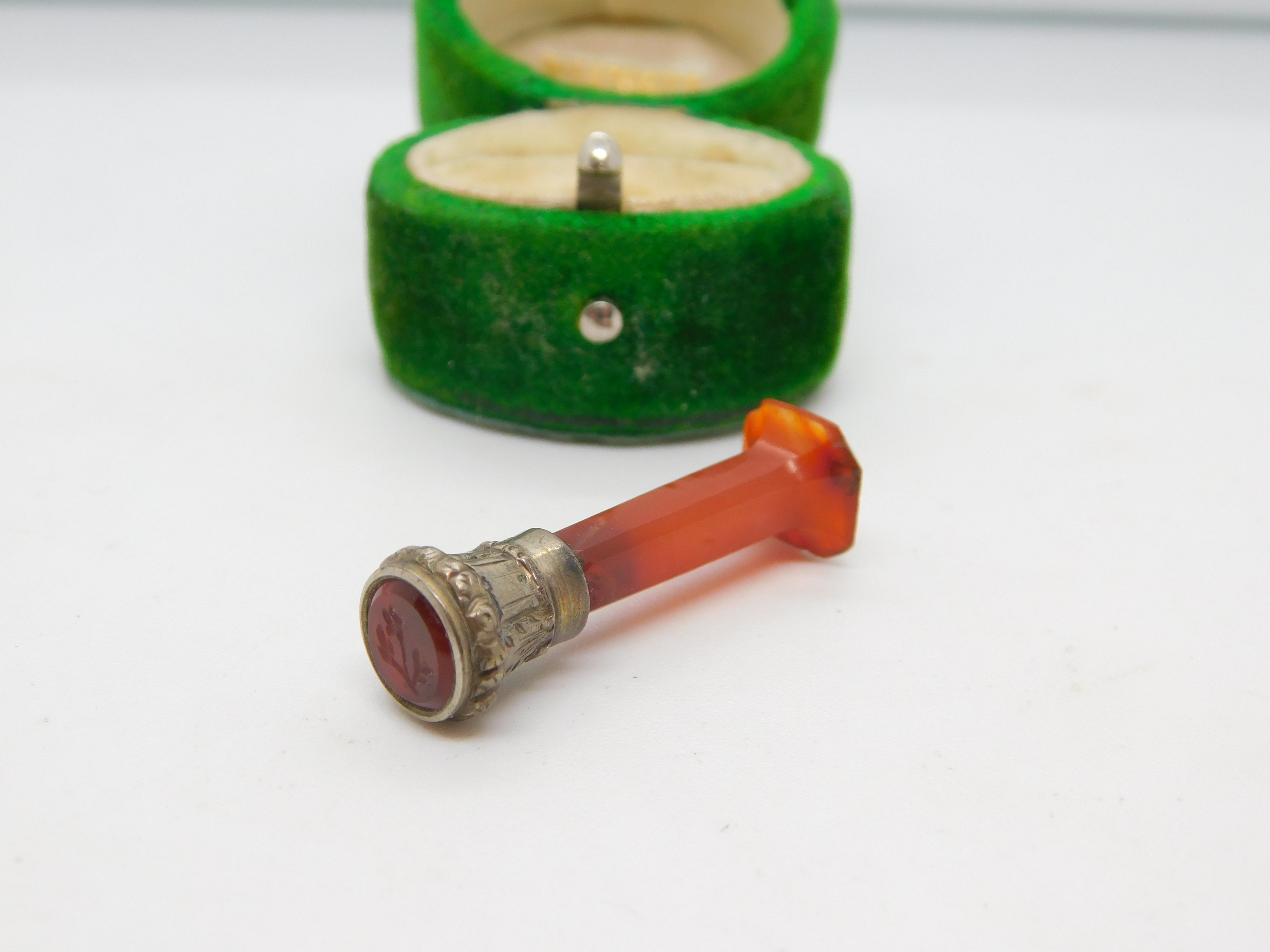 Victorian Sterling Silver Carved Red Agate Floral Desk Seal Stamp Antique c1860