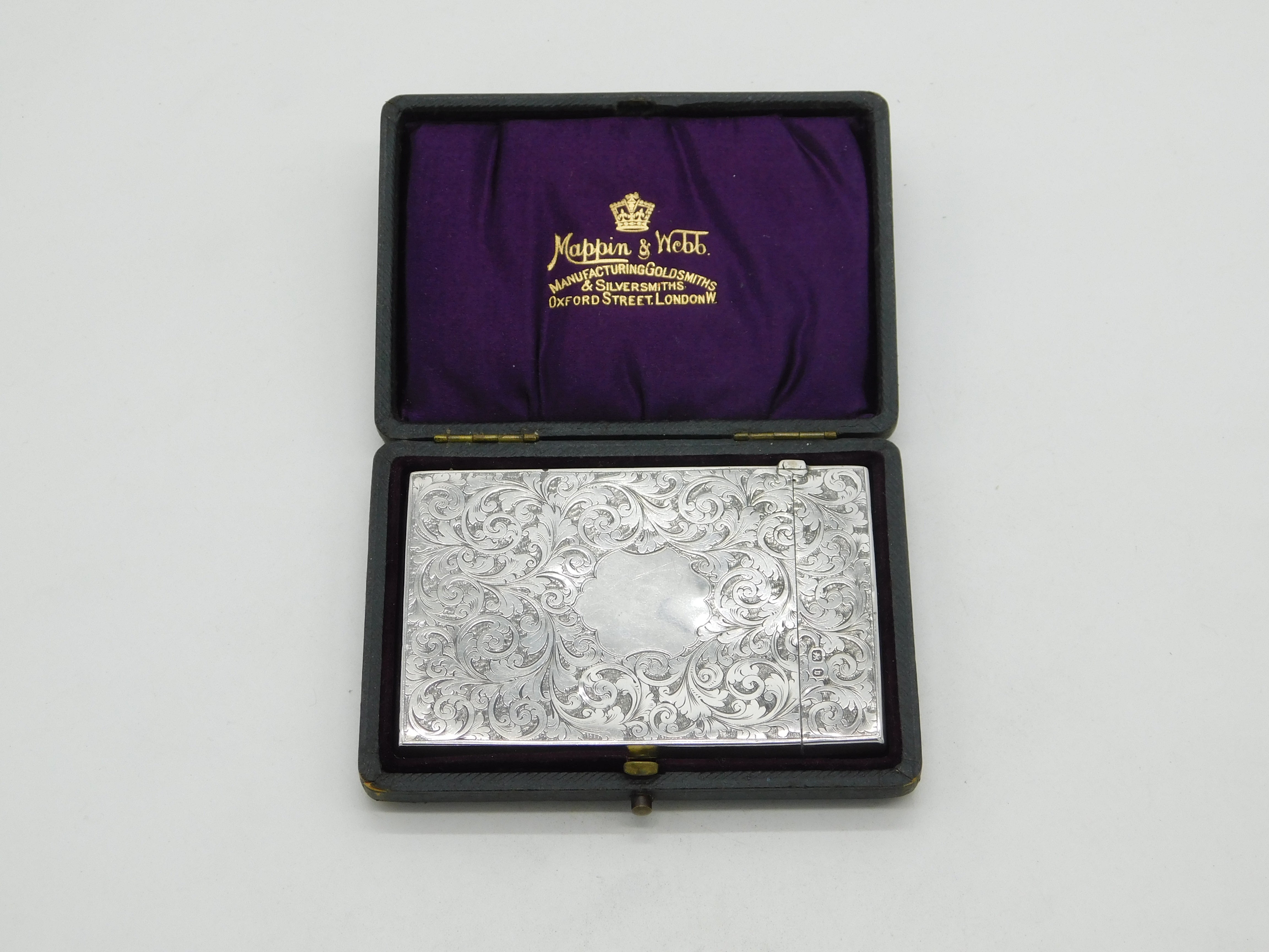 Victorian Sterling Silver Card Case with Mappin & Webb Original Box 1876 Antique