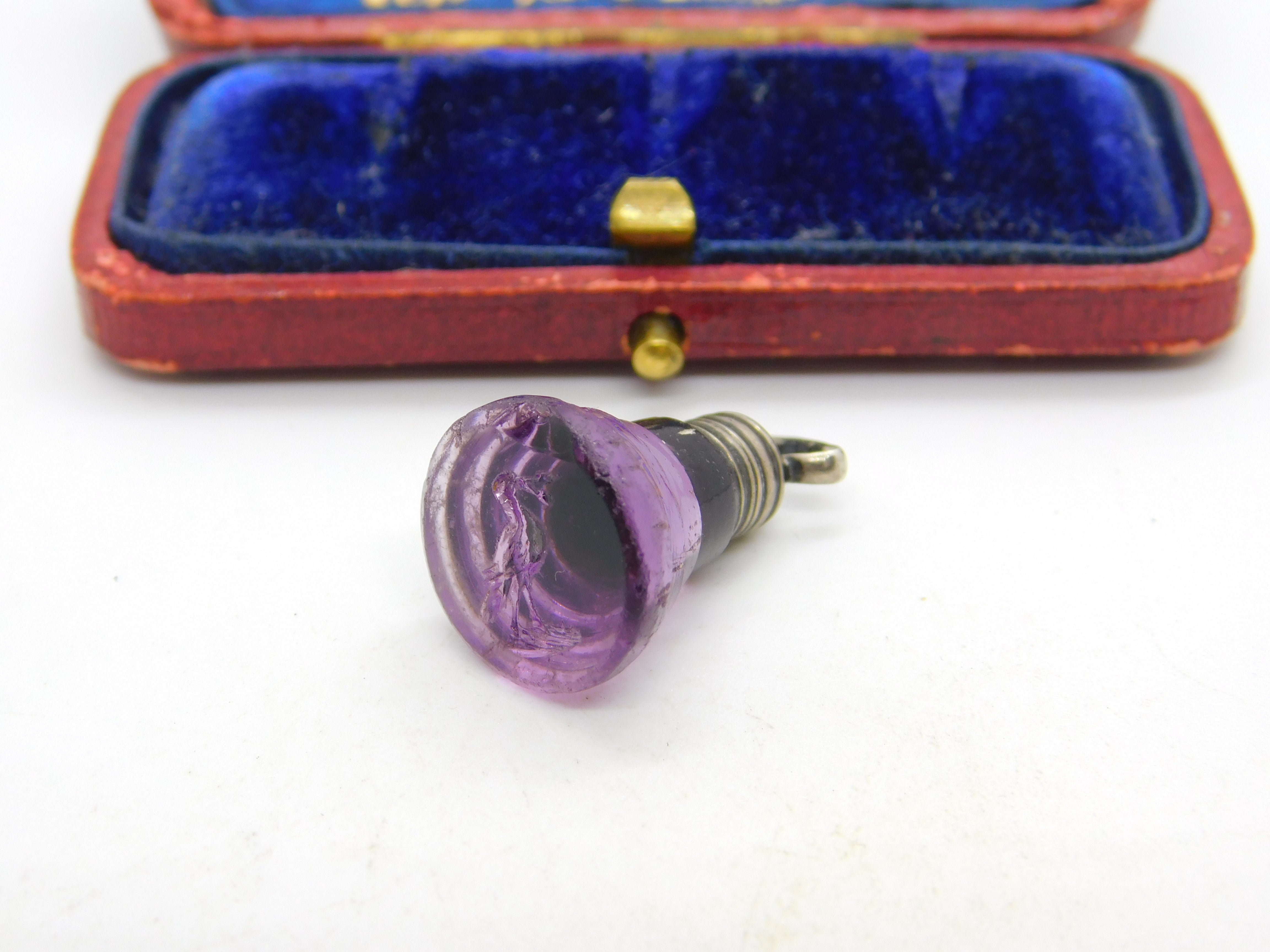 Victorian Sterling Silver Carved Amethyst Stork Bird Fob Seal c1840 Antique