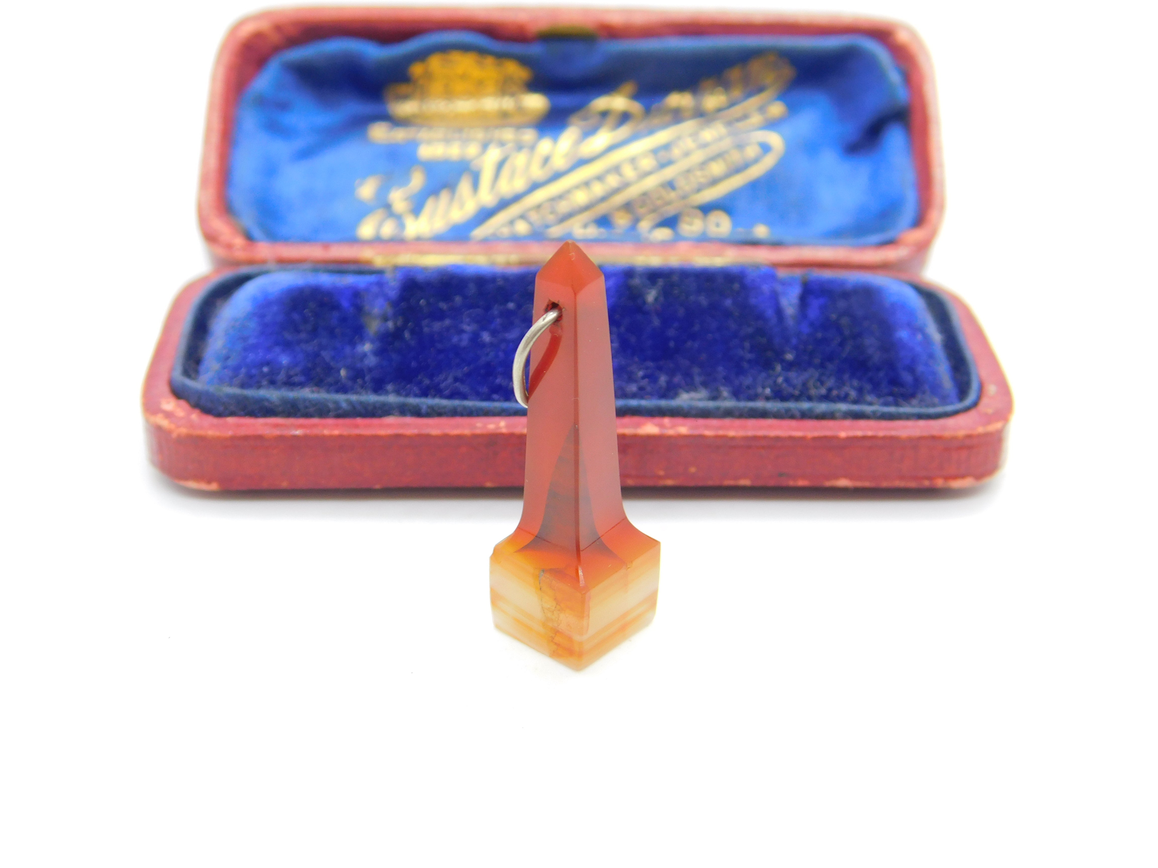 Victorian Sterling Silver Carved Red Agate Obelisk Fob Pendant Antique c1860