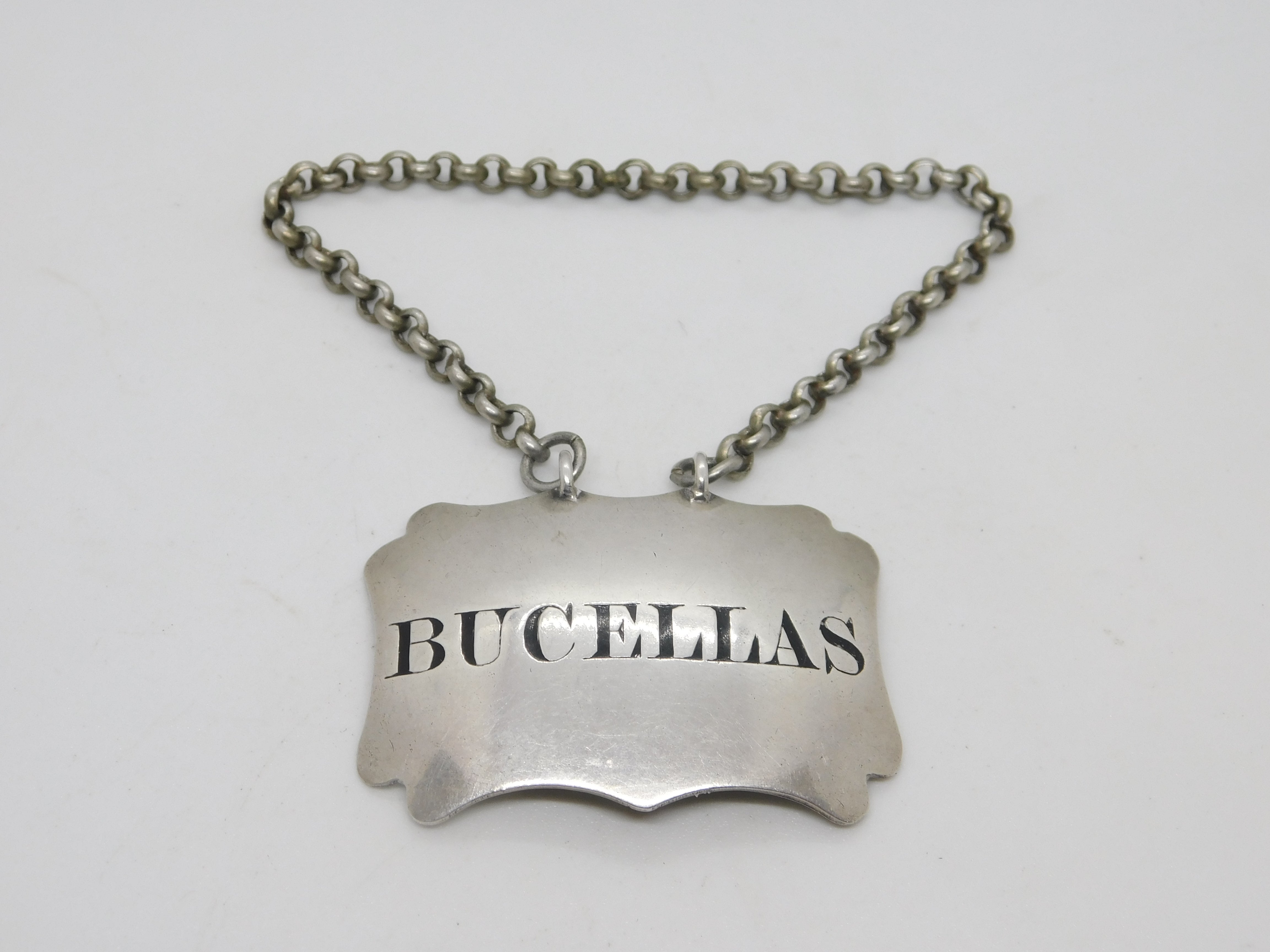 Victorian Sterling Silver Bucellas Wine Decanter Label Antique 1838 London