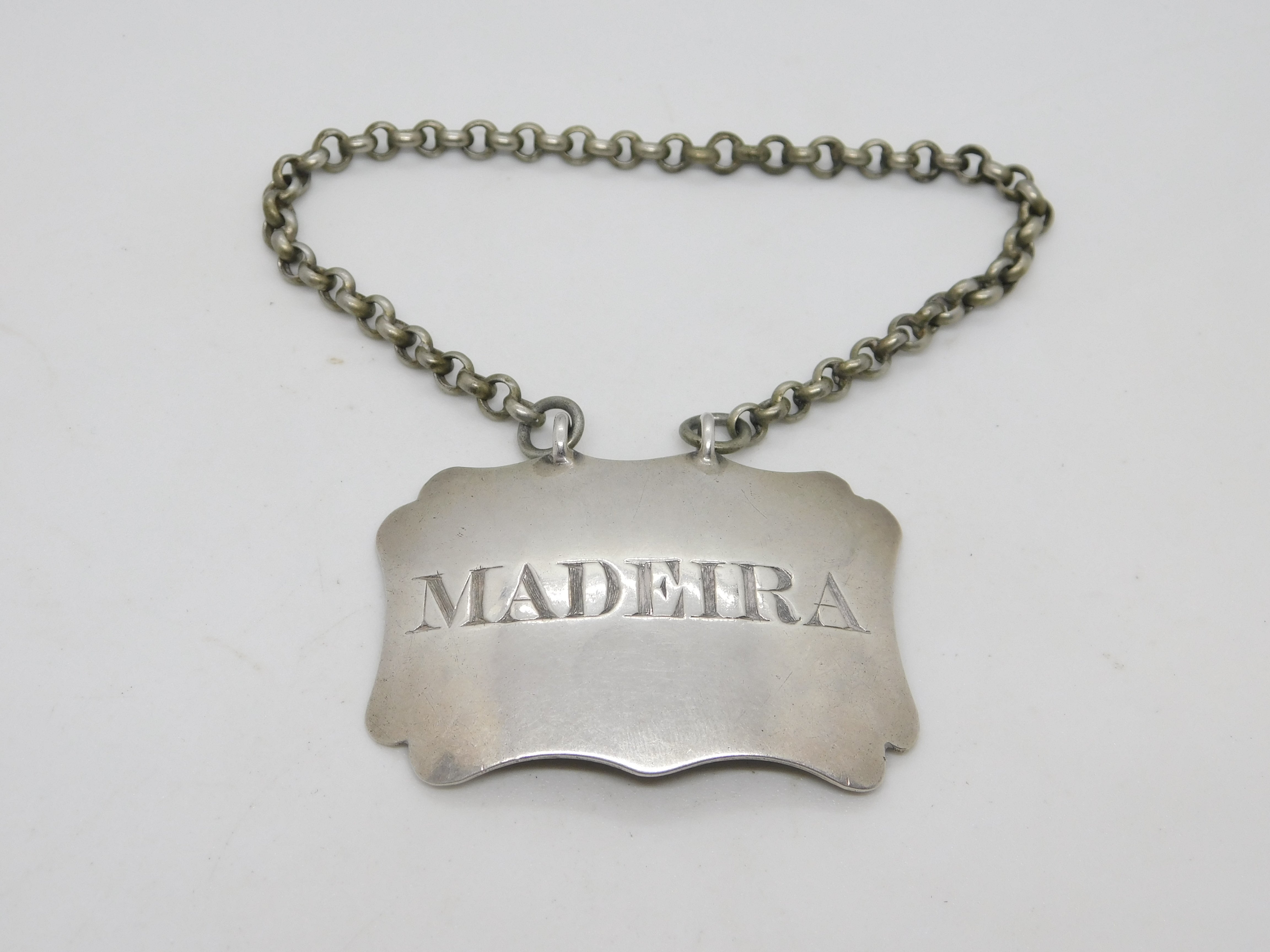 Victorian Sterling Silver Bright Cut Madeira Decanter Label Antique 1838 London