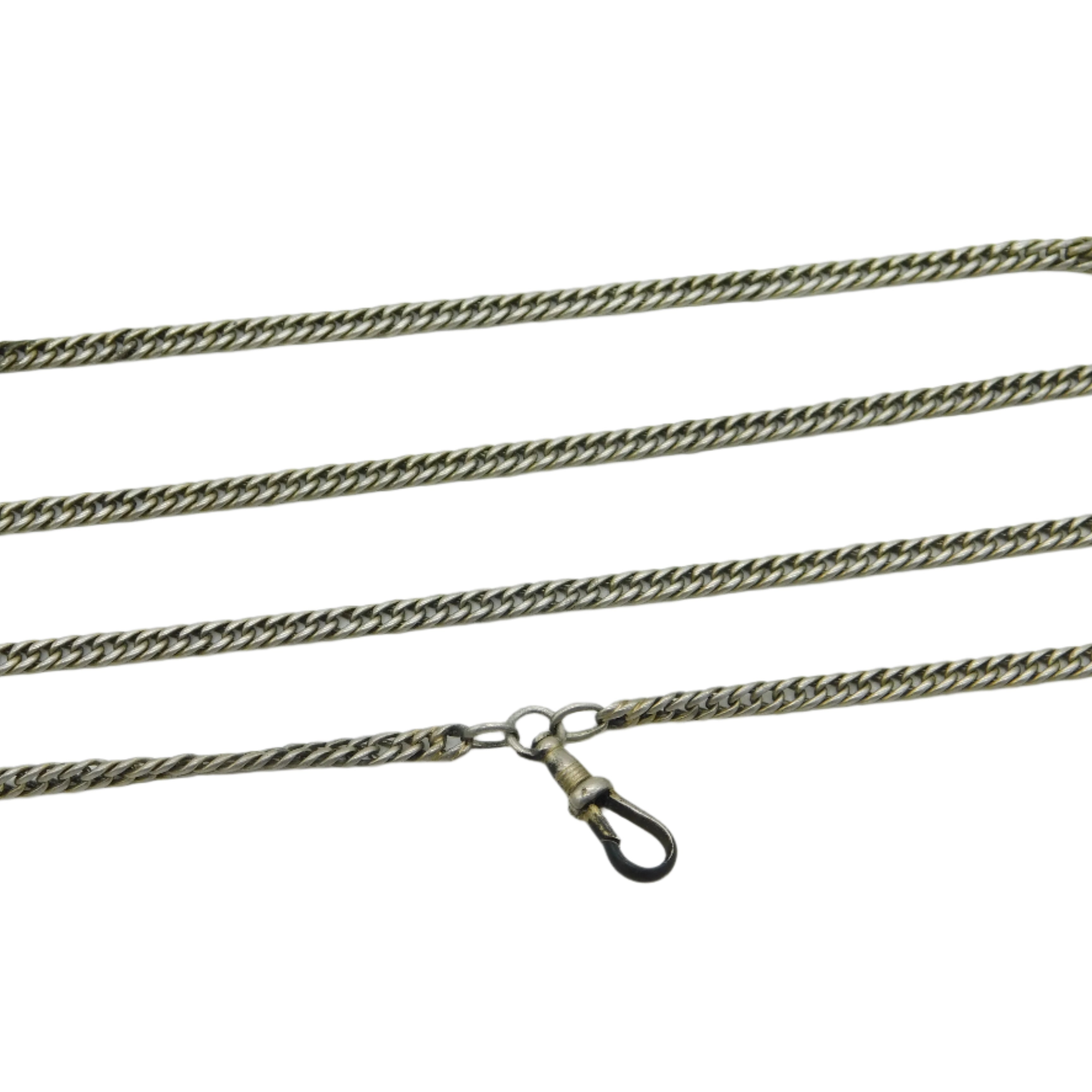 Victorian Sterling Silver Cable Link Long Guard Muff Chain Antique c1860